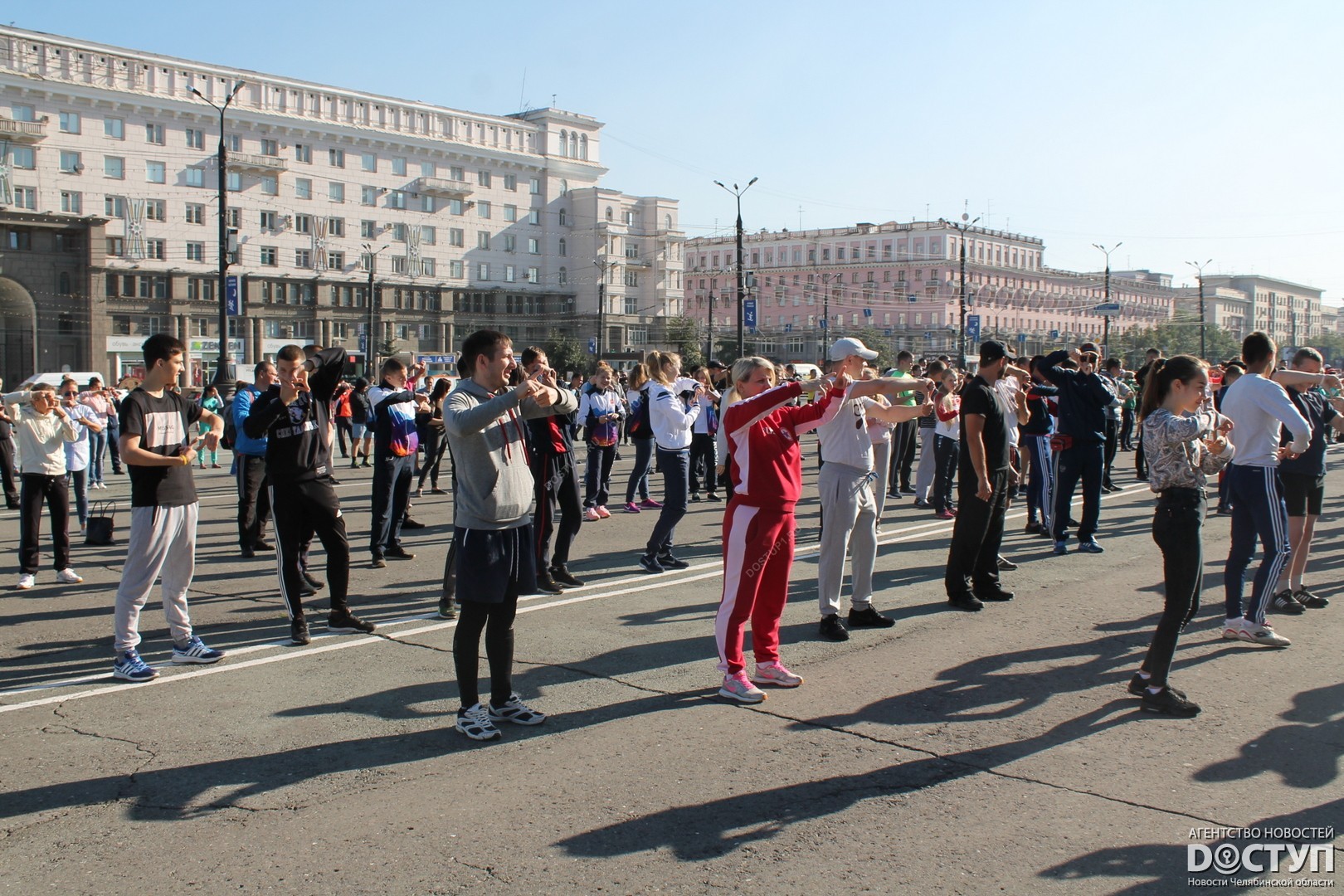 Солнечное и нежаркое утро четверга, 10 августа, началось в Челябинске с массовой зарядки, которую провела чемпионка мира по конькобежному спорту, серебряный призер Олимпийских игр 2014 года, Заслуженный мастер спорта России Ольга Фаткулина. «Зведную» разминку, по подсчетам организаторов, не пропустили более 300 человек. В их числе – корреспондент Агентства новостей «Доступ».