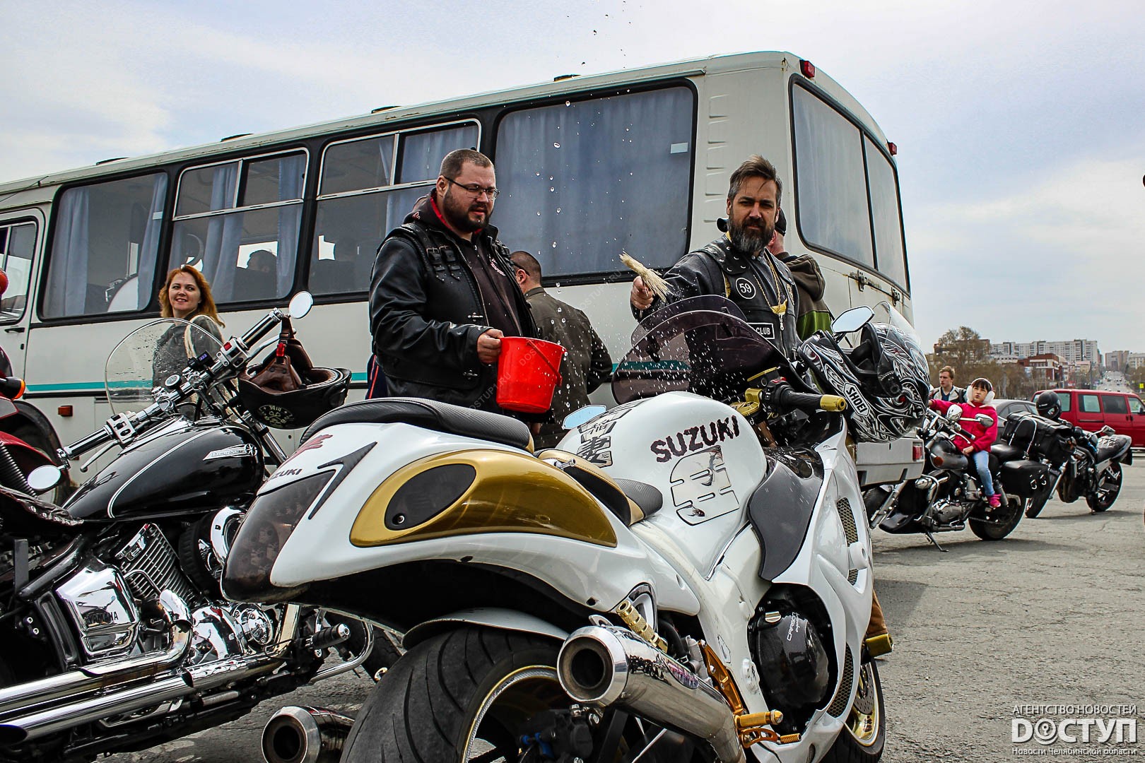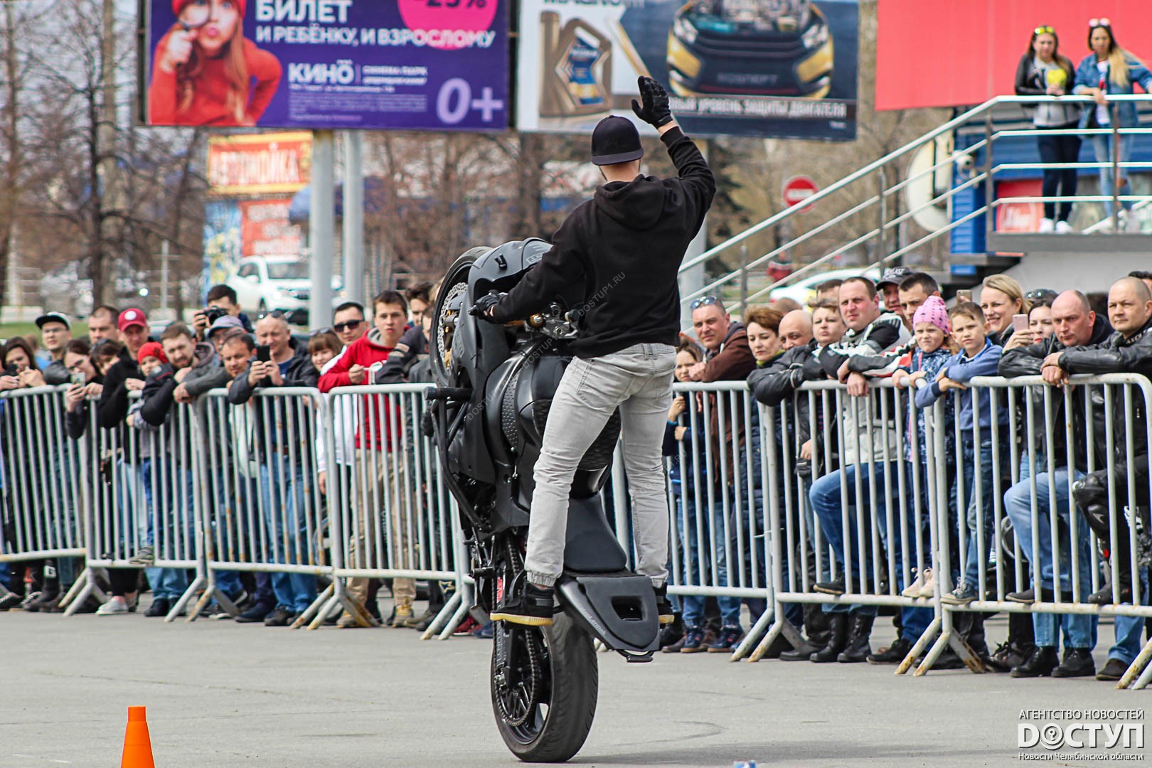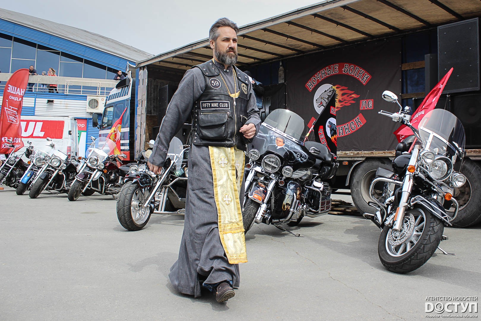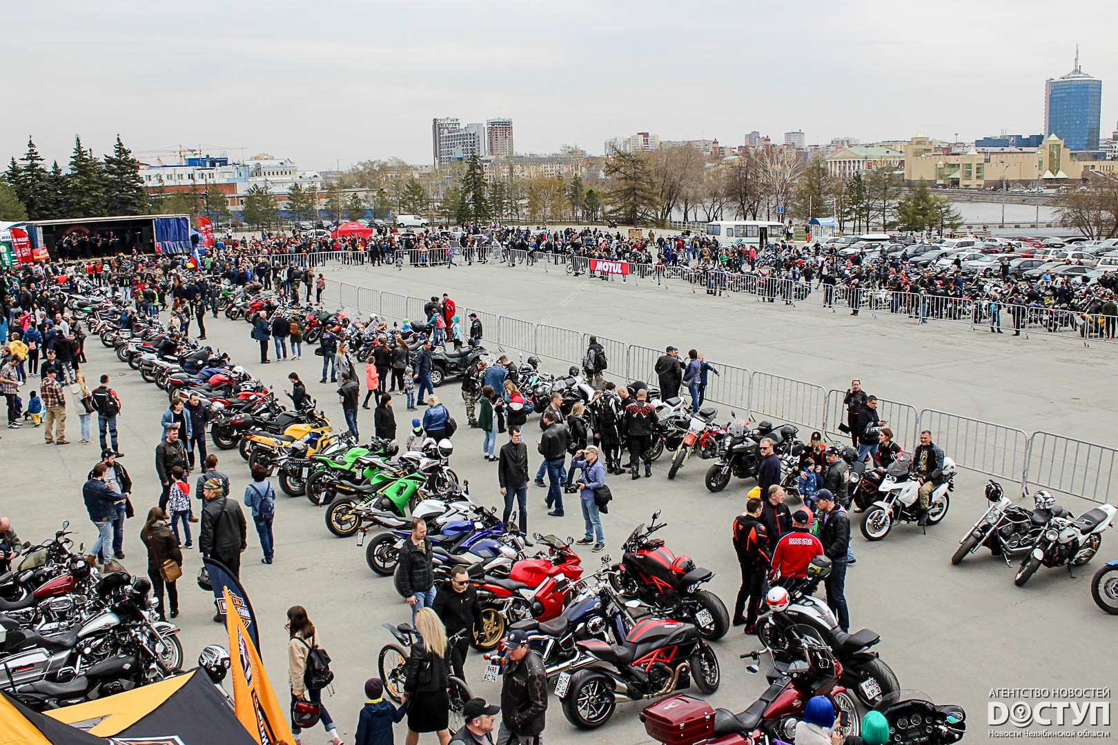 В Челябинске участники мотоклуба «Ночные волки» открыли сезон – 4 мая они устроили масштабное шоу на набережной у Торгового центра.