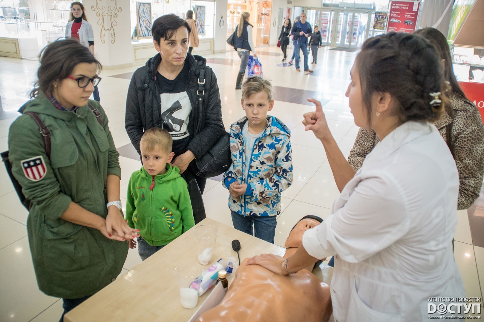 Челябинцы могли попрактиковаться в оказании первой помощи на медицинских манекенах. Образовательные мероприятия под общим названием «День обучения оказанию первой помощи» проводили студенты Южно-Уральского государственного медицинского университета. Экспресс-обучение прошло одновременно на Кировке и в двух ТРК. С прохожими работали в общей сложности 50 будущих врачей.
