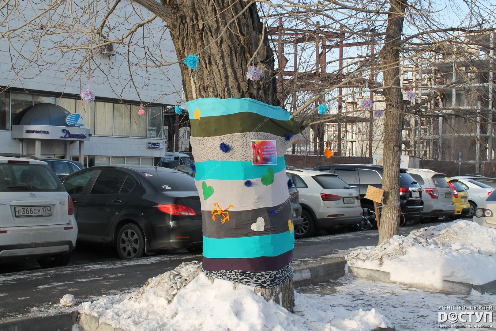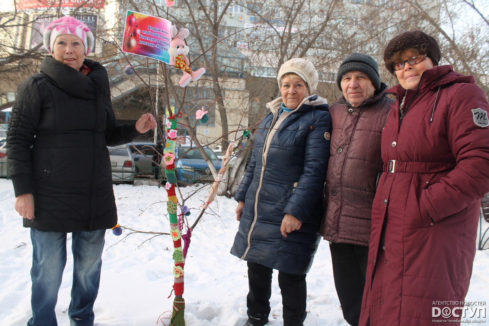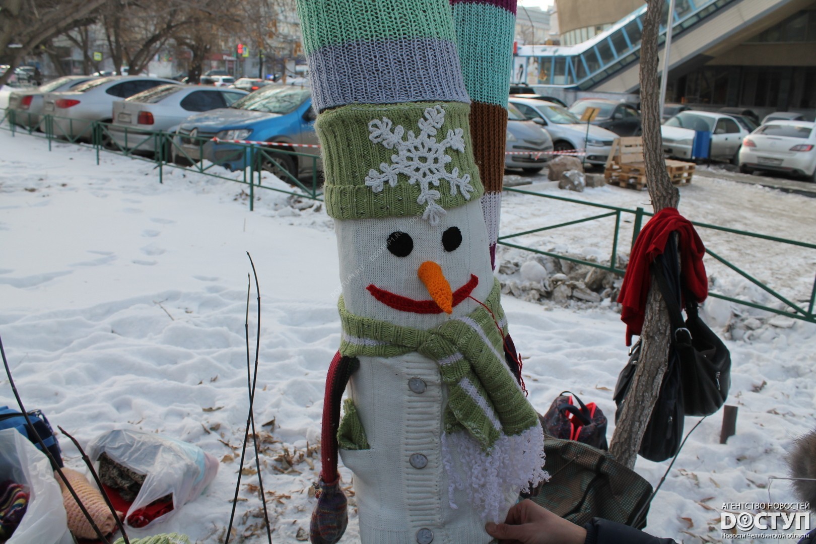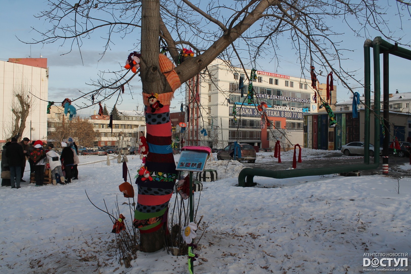 В четверг, 21 декабря, в Челябинске прошел первый фестиваль ярнбомбинга «РасКраски», в ходе которого участники создали своеобразные чехлы для деревьев, лавочек и уличных фонарей.