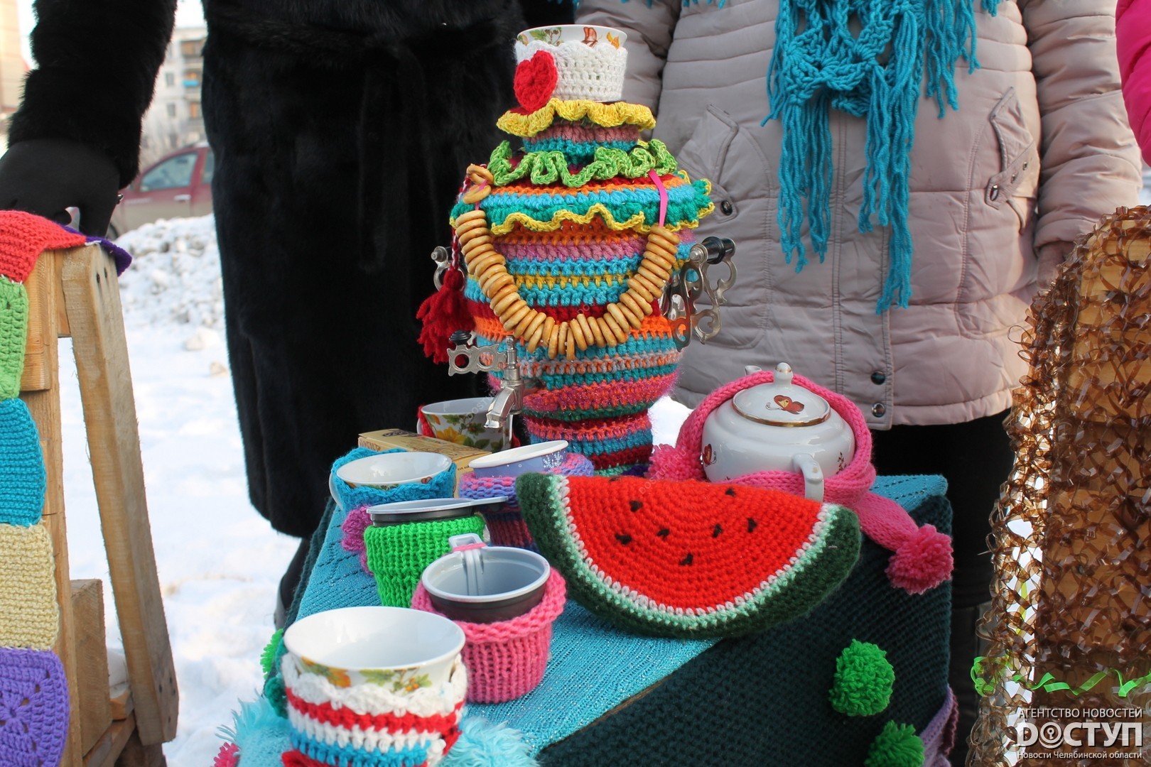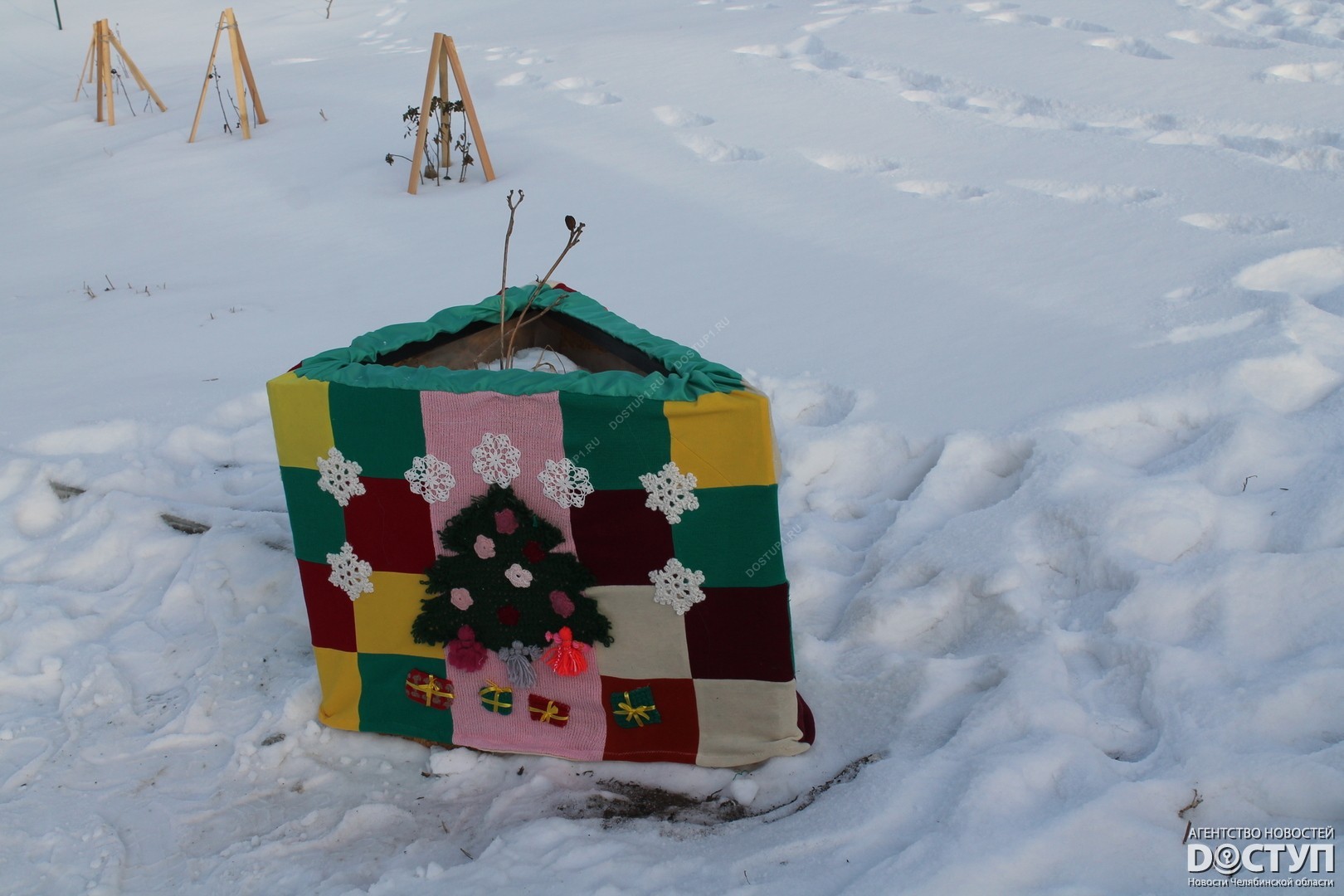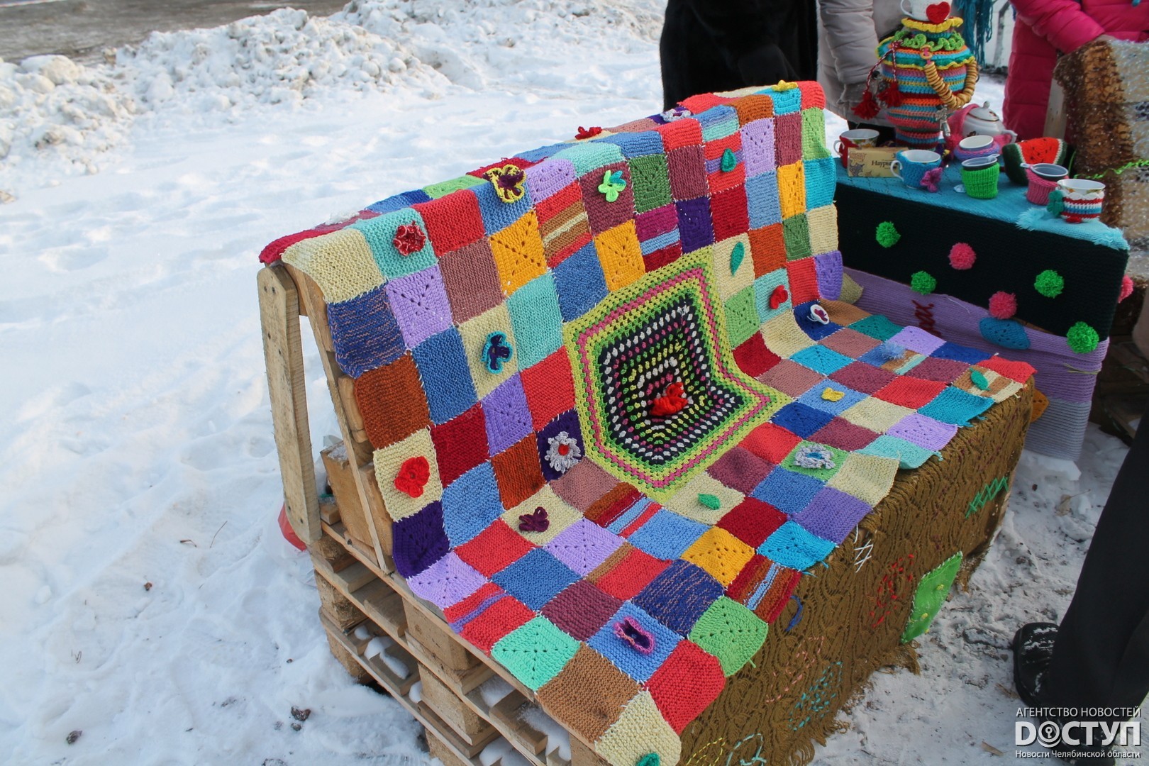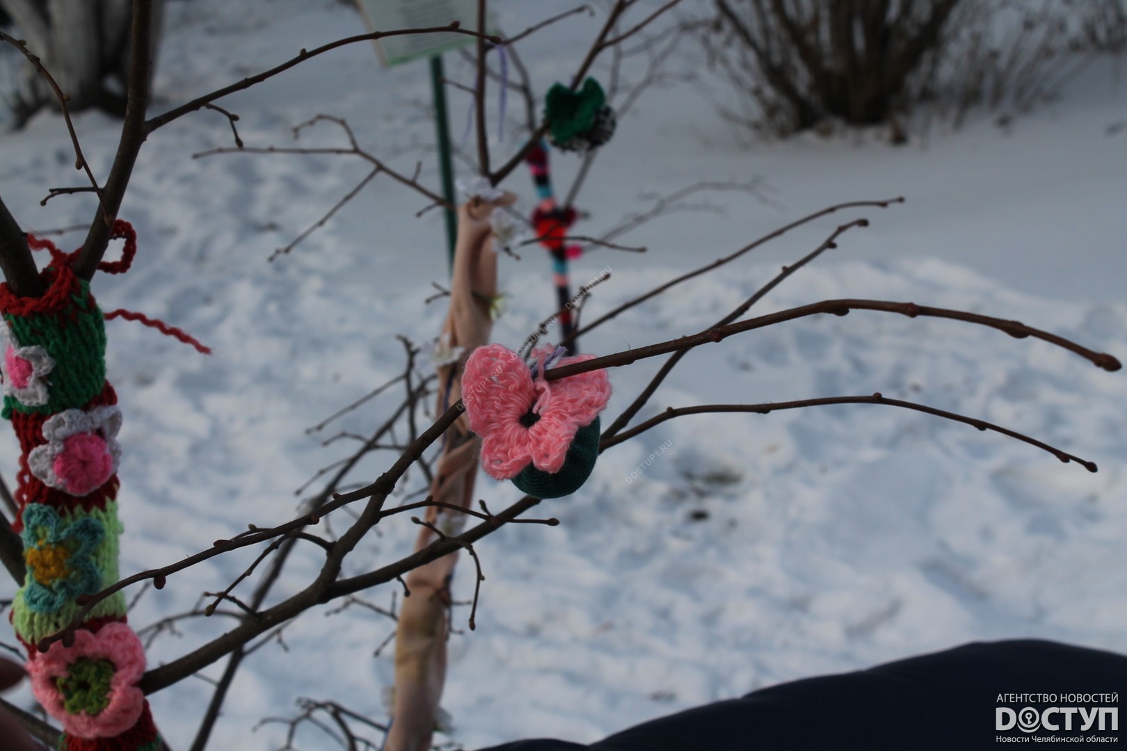 В четверг, 21 декабря, в Челябинске прошел первый фестиваль ярнбомбинга «РасКраски», в ходе которого участники создали своеобразные чехлы для деревьев, лавочек и уличных фонарей.