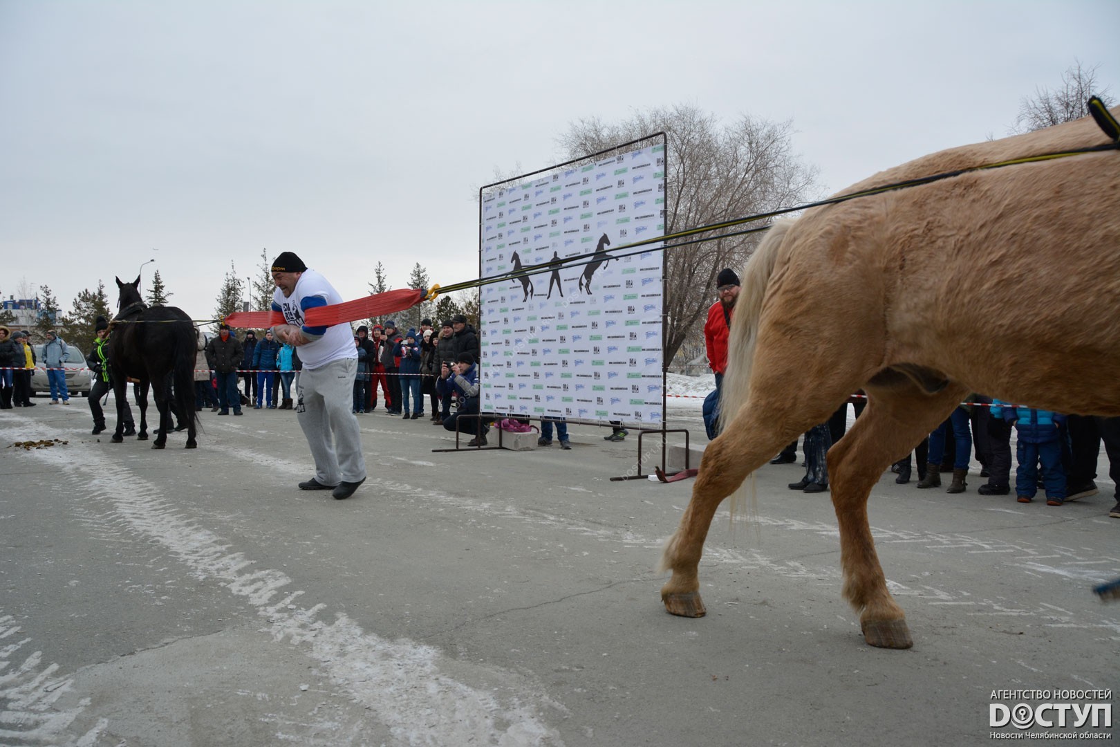 Уральский стронгмен Эльбрус Нигматуллин устроил очередное силовое шоу для челябинцев – атлет несколько минут удерживал на месте двух рвущихся в разные стороны лошадей.