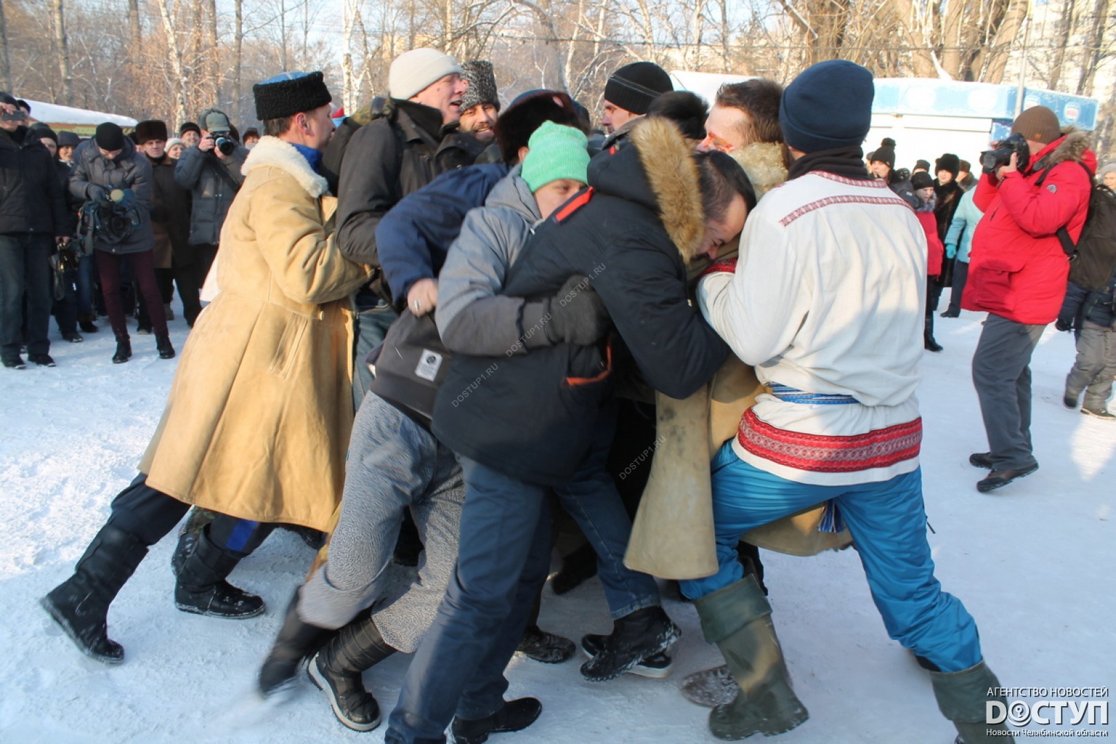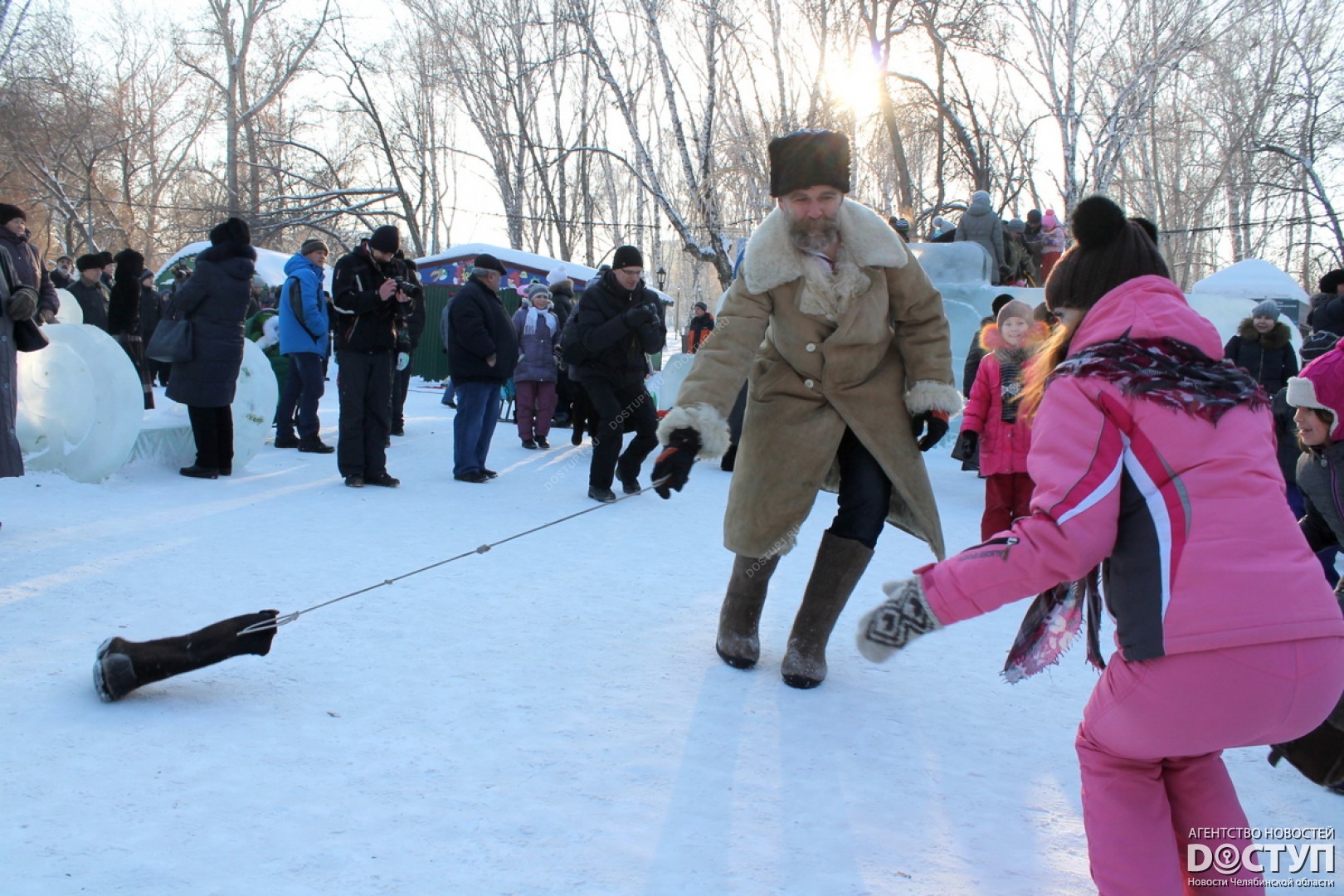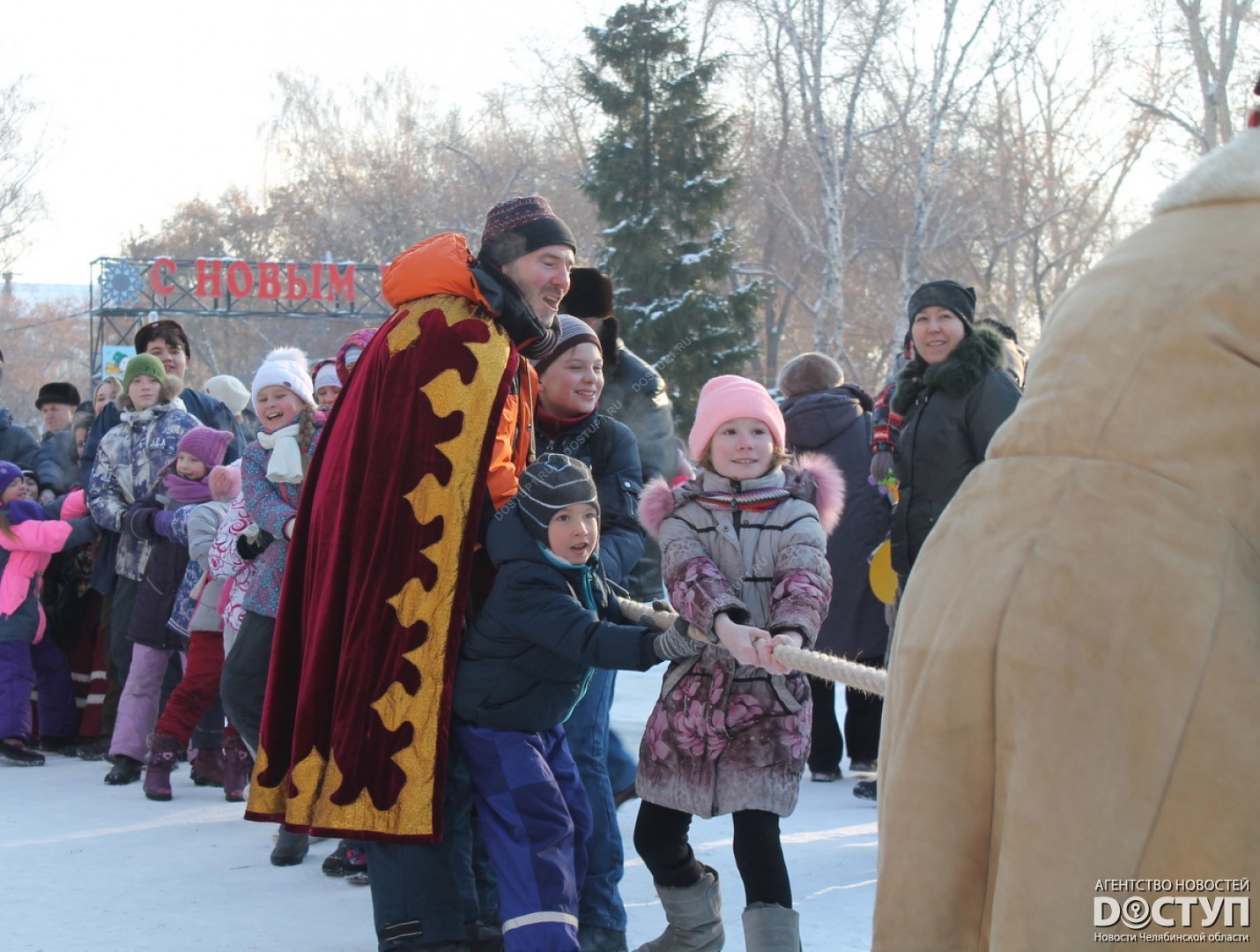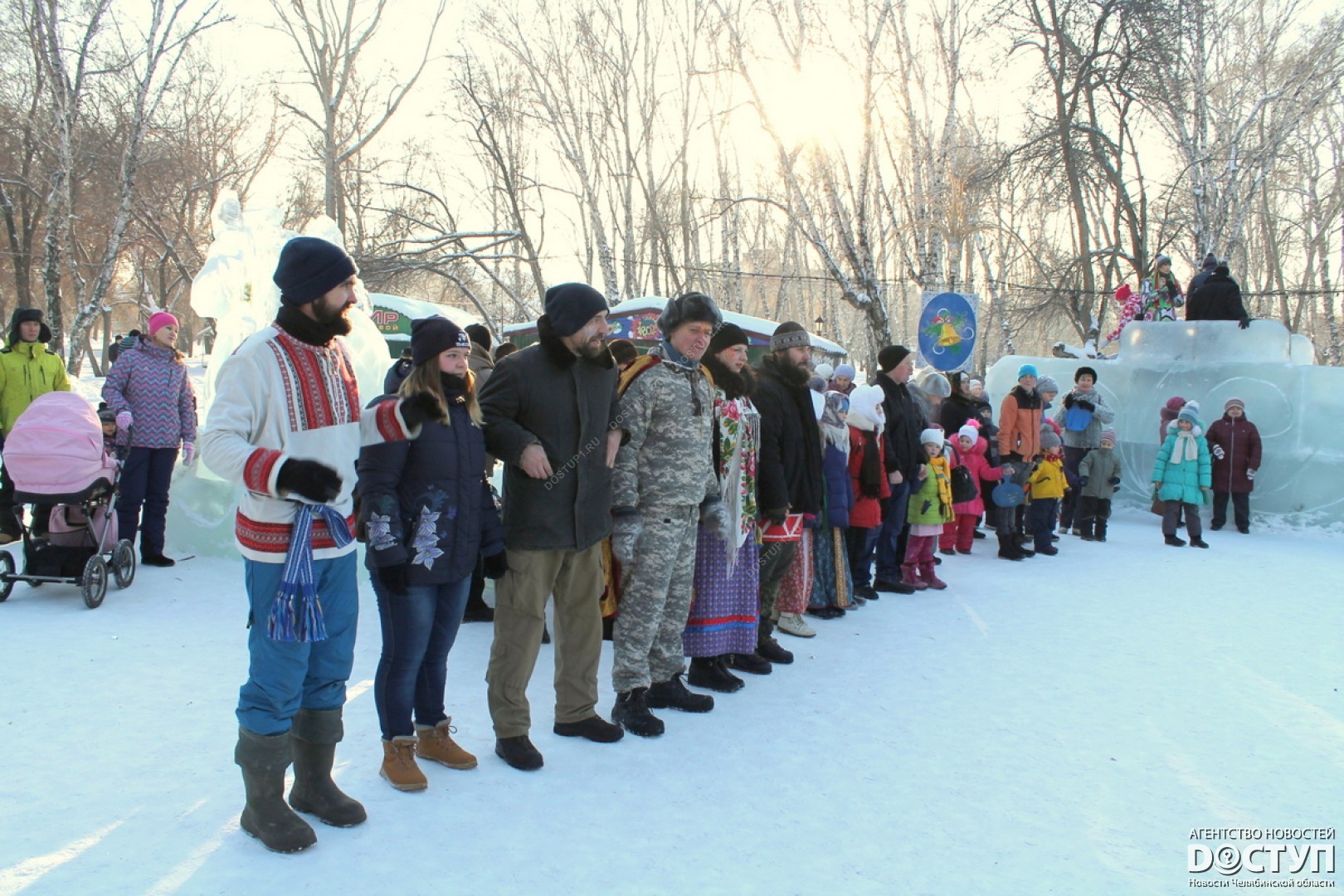 В субботу, 14 января, в Саду Победы прошел зимний фестиваль народных игр и забав «Святки-2017». Небольшой мороз и яркое зимнее солнце «подогрели» желание челябинцев со всех районов города прийти на праздник и окунуться в атмосферу исконно русских январских традиций. Добрые девушки с румяными щеками наливали ромашковый чай, детвора водила хороводы, ведуньи гадали на сахаре и соли, а мужики – сильные и смелые – шли «стенкой на стенку». Все самые яркие моменты праздника – в репортаже Агентства новостей «Доступ».