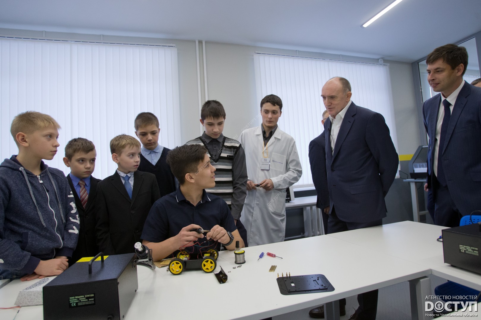 Губернатор Челябинской области Борис Дубровский открыл челябинский кванториум, который расположен по адресу: Орджоникидзе, 50. Технопарк занял первый этаж центра компьютерного инжиниринга ЮУрГУ. Глава региона ознакомился с первыми работами юных инженеров и их творениями – авто- и авиамоделями, роботами и напечатанными на 3-D принтере предметами.