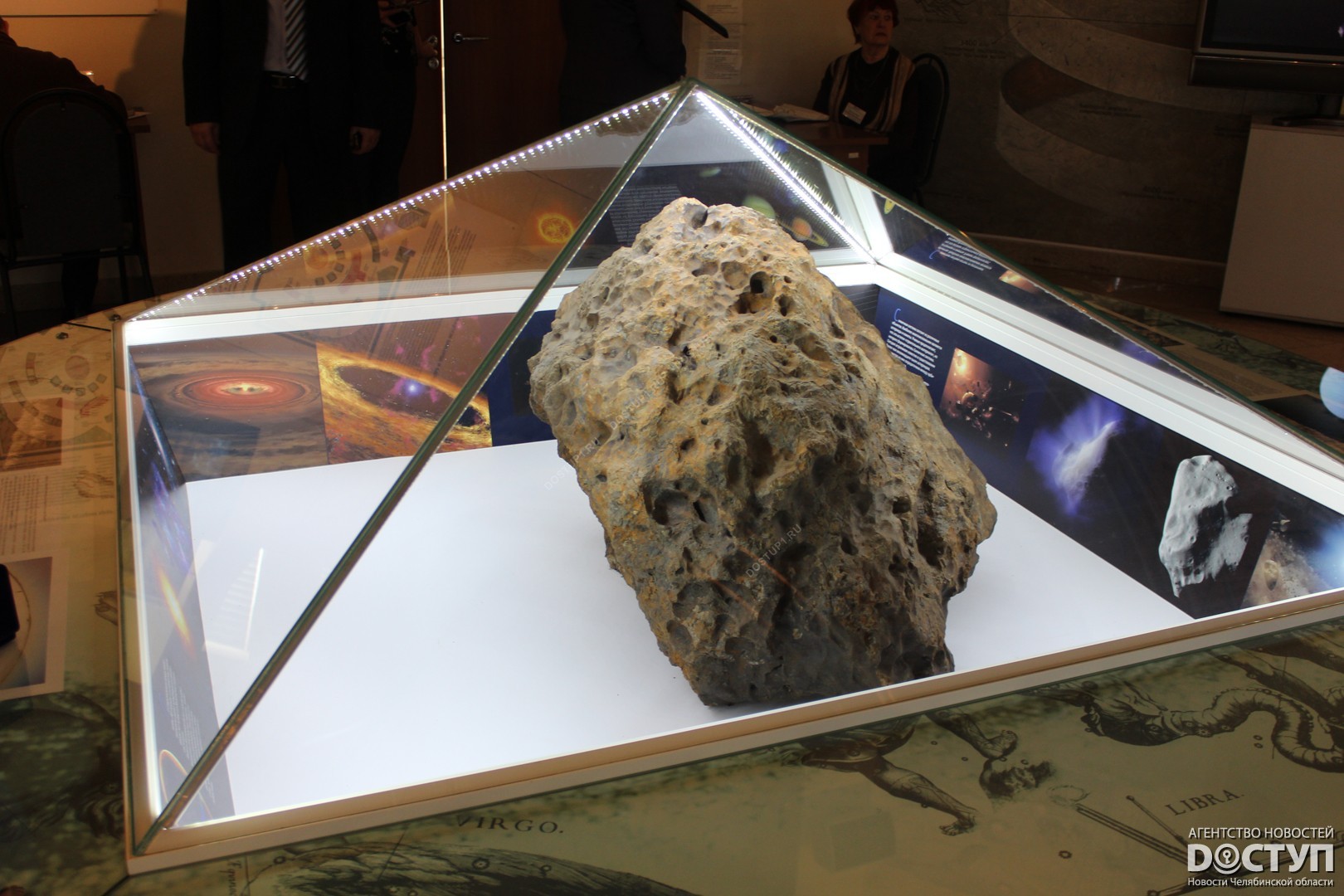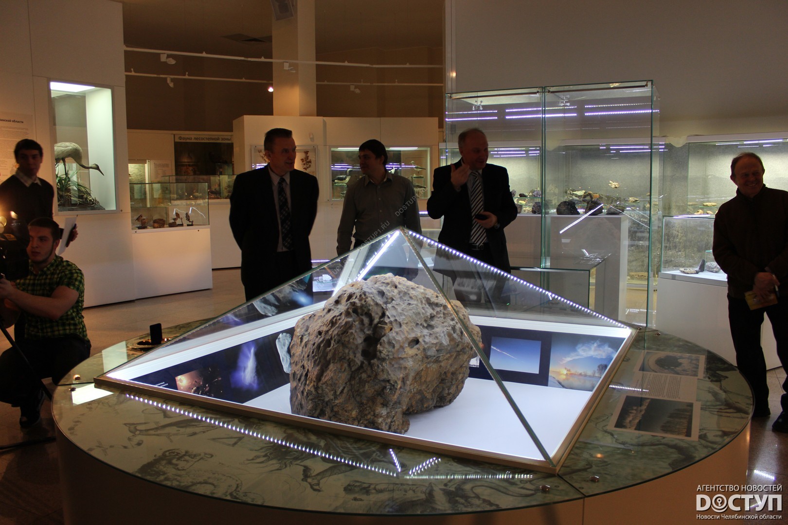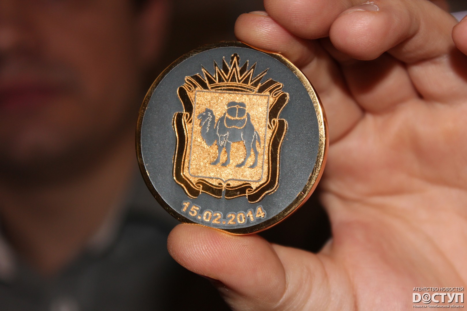 Сегодня, 3 февраля, в Челябинском краеведческом музее презентовали две медали, выполненные с фрагментами метеорита. Одна из них отправится представлять Южный Урал на Олимпийскую выставку в Сочи, другая останется в фондах челябинского музей. Изделие с осколком космического тела директору краеведческого музея в торжественной обстановке вручил заместитель министра культуры Челябинской области Вячеслав Харюшин.
