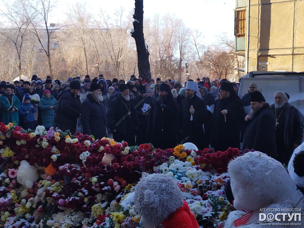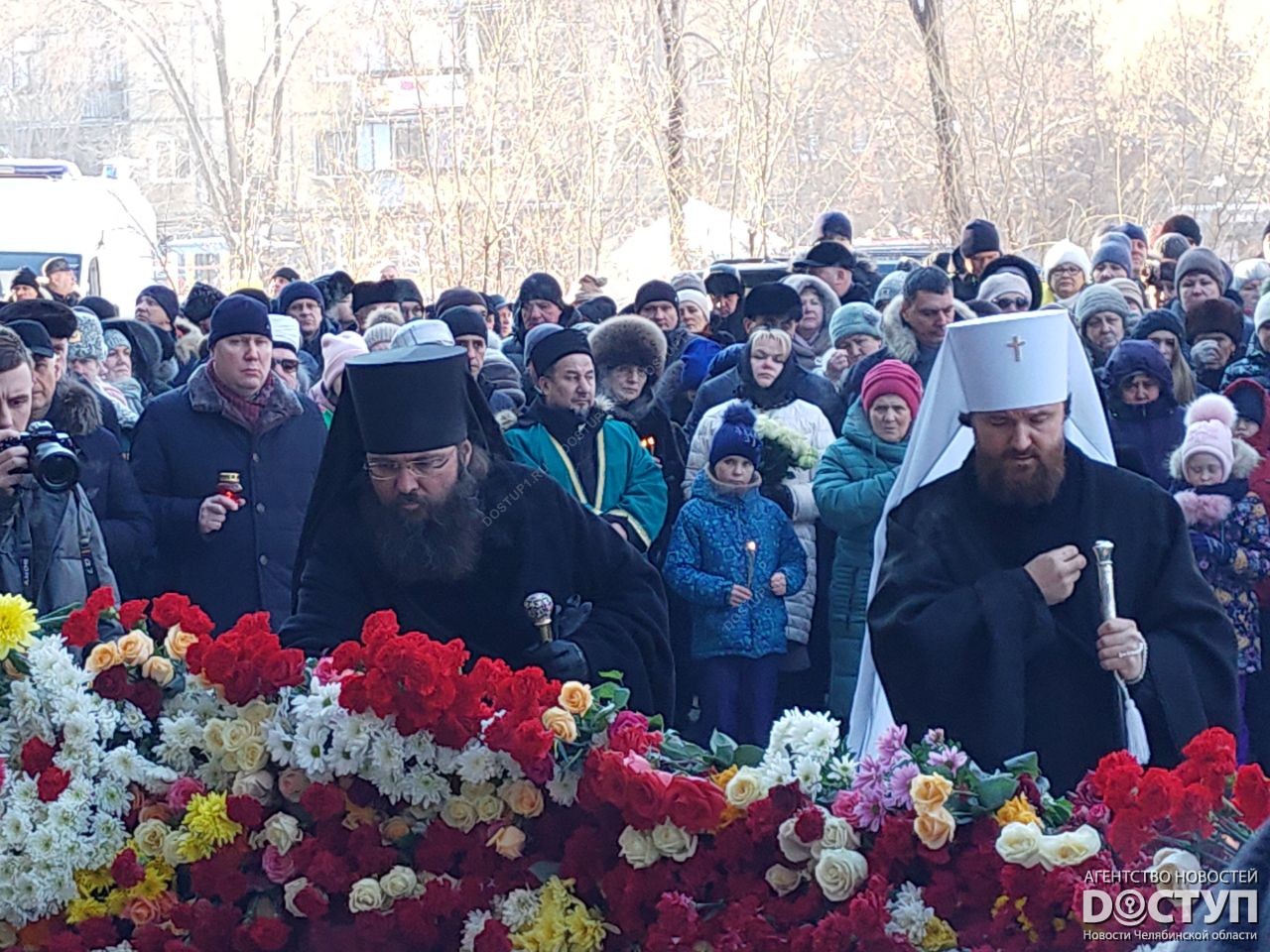 Богослужения в Кафедральном соборе Вознесения Христова возглавил митрополит Челябинский и Миасский Григорий в сослужении епископов Магнитогорского и Верхнеуральского Иннокентия и Златоустовского и Саткинского Викентия, а также духовенства Челябинской митрополии. Затем прошла заупокойная лития на месте трагедии – в ней приняли участие сотни магнитогорцев, губернатор Челябинской области Борис Дубровский, глава Магнитки Сергей Бердников.
