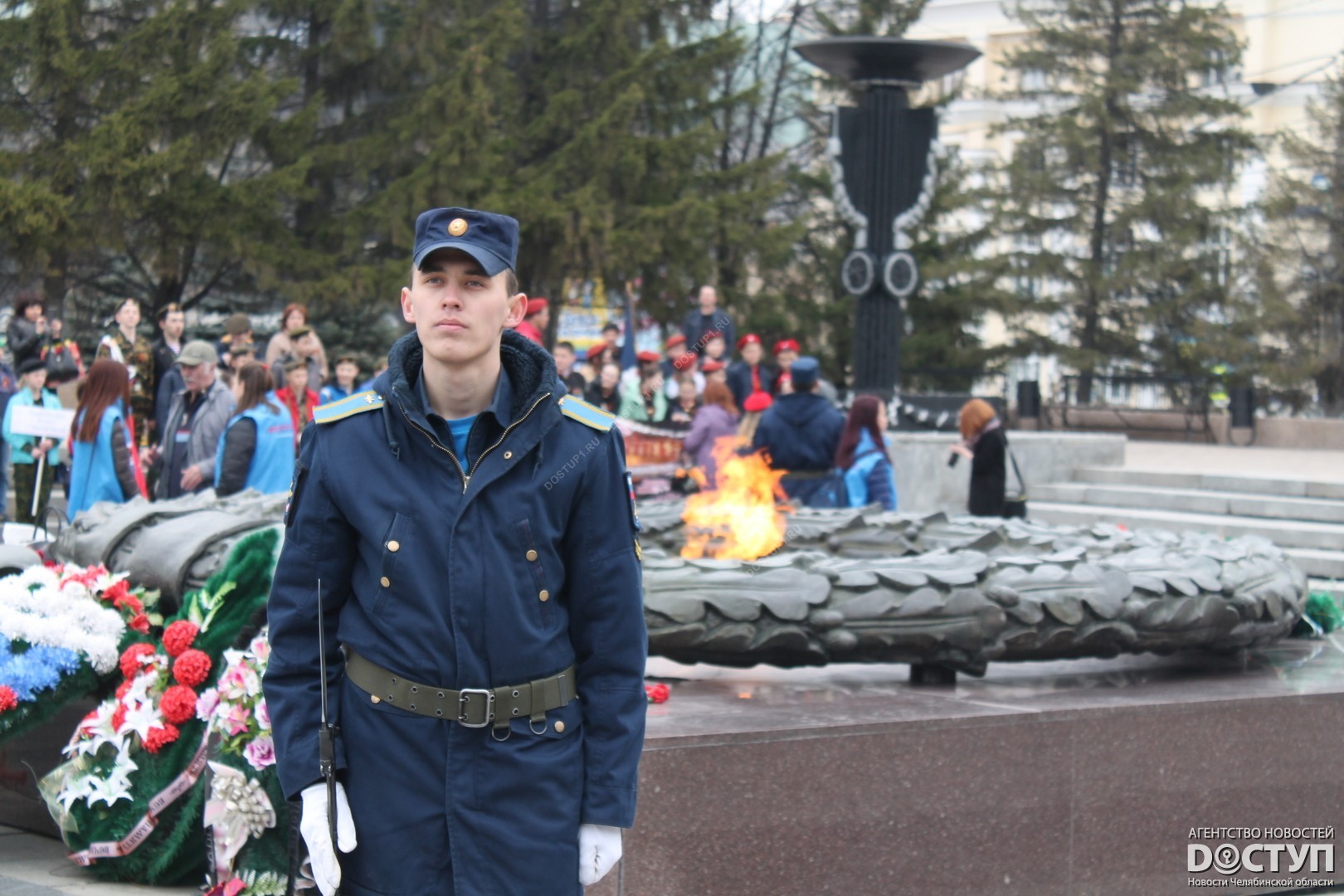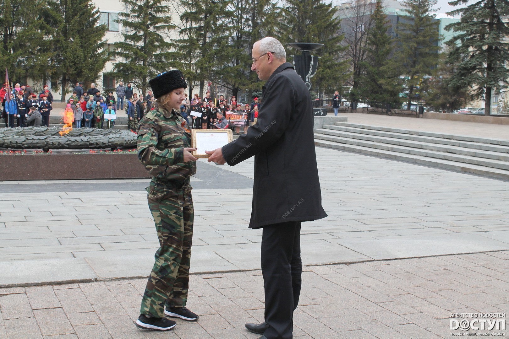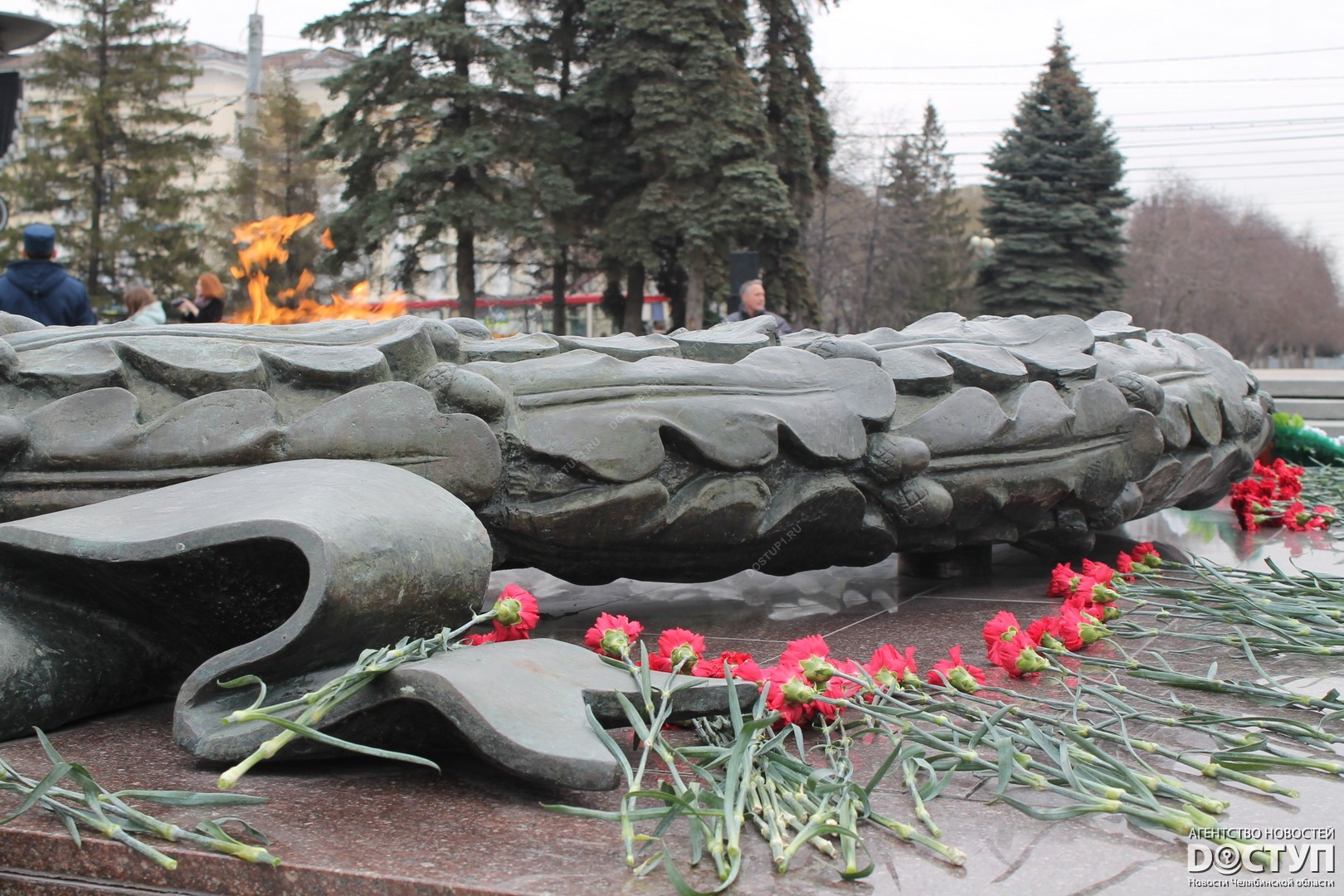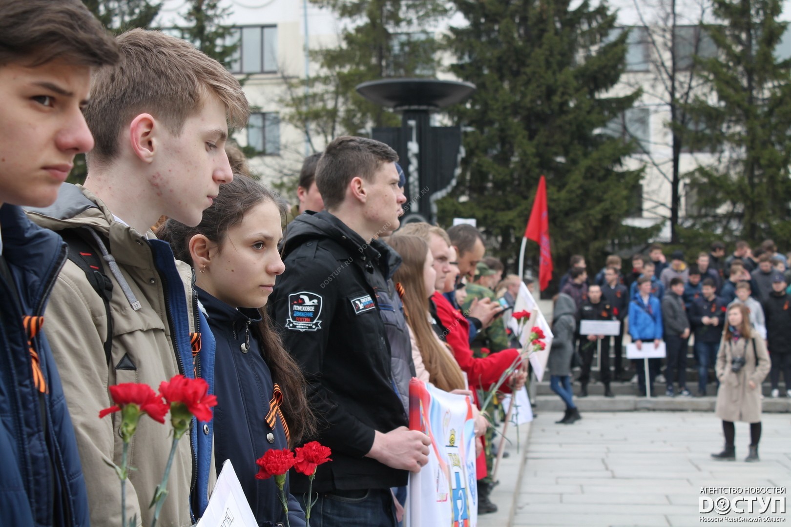 Почтили память героев Великой Отечественной войны минутой молчания и возложили цветы к Вечному огню более 200 участников мероприятия.