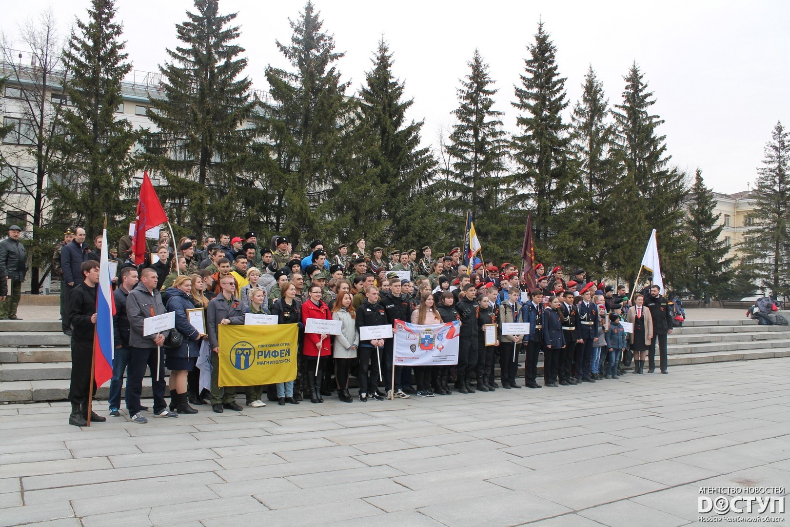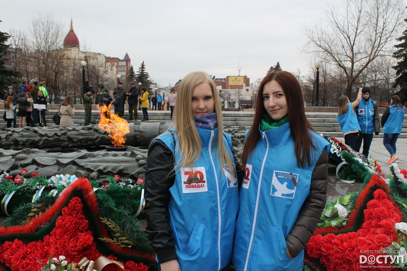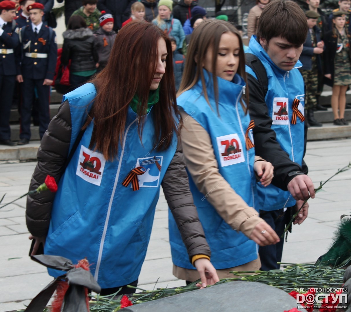 Почтили память героев Великой Отечественной войны минутой молчания и возложили цветы к Вечному огню более 200 участников мероприятия.