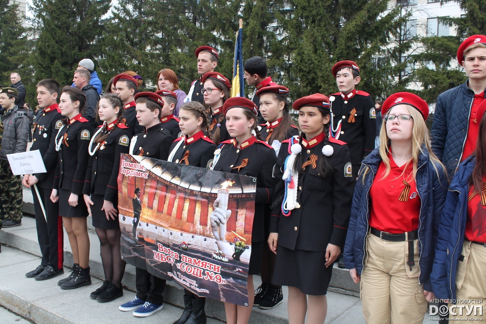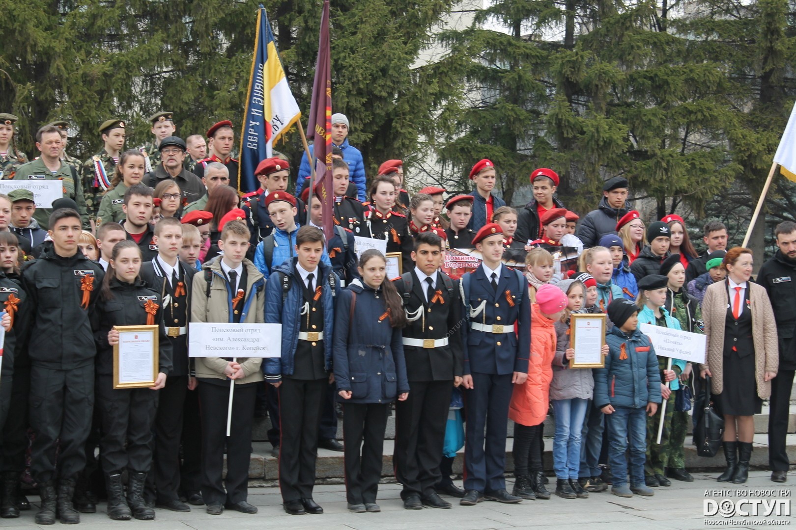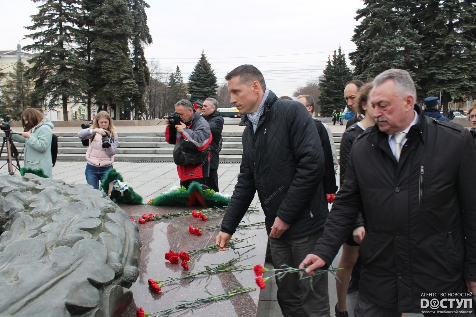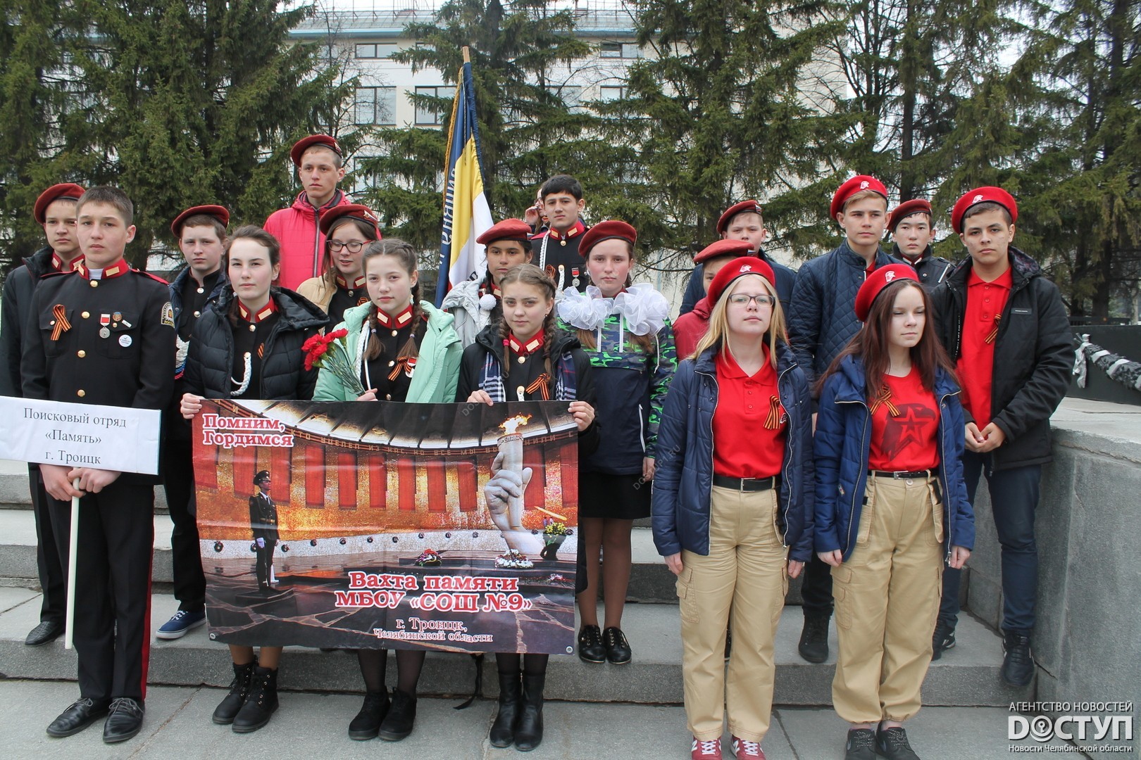 Почтили память героев Великой Отечественной войны минутой молчания и возложили цветы к Вечному огню более 200 участников мероприятия.