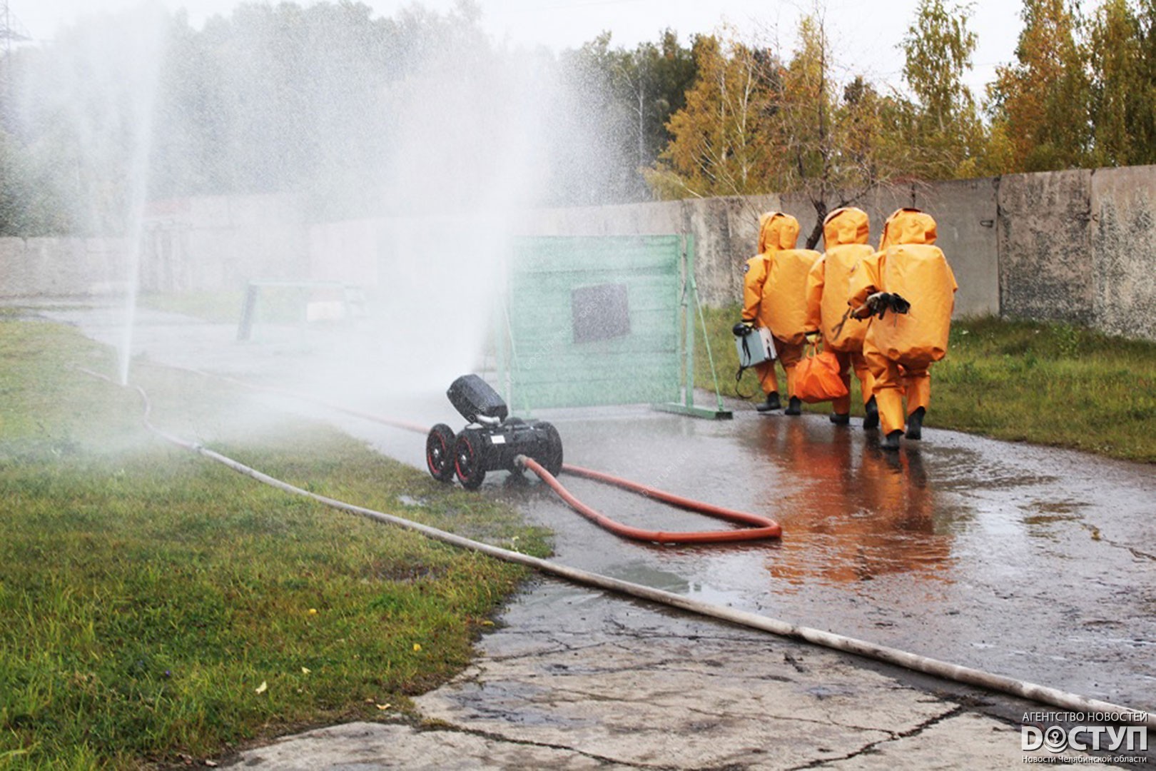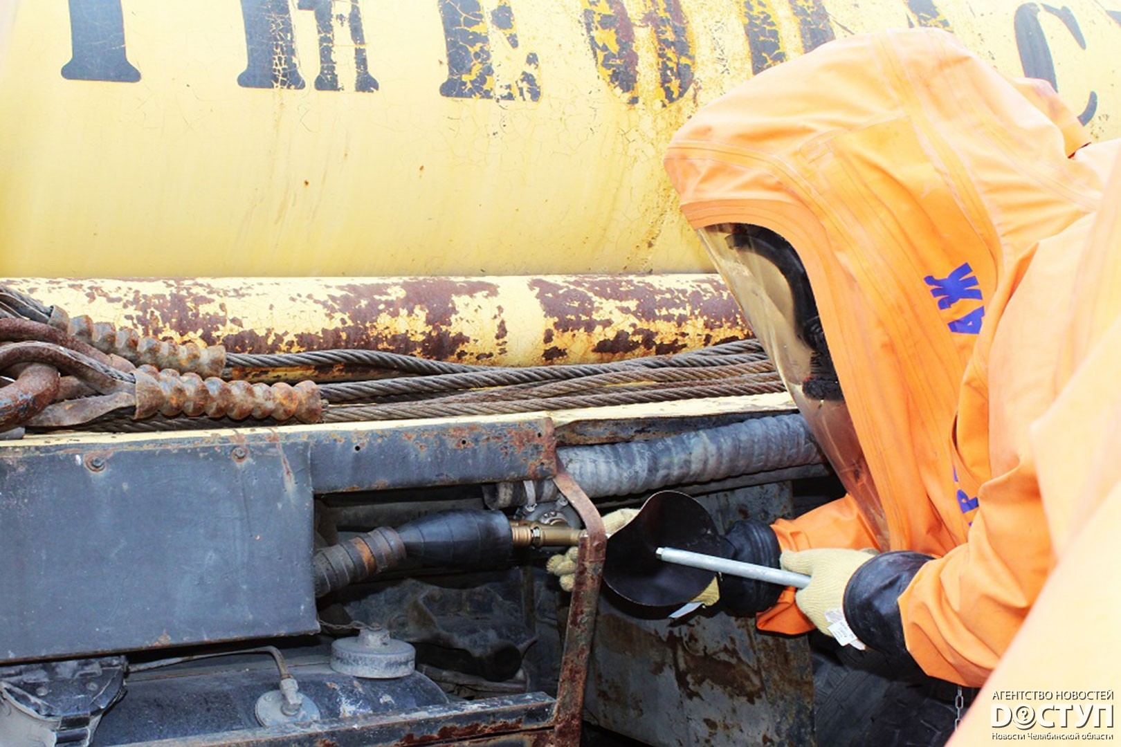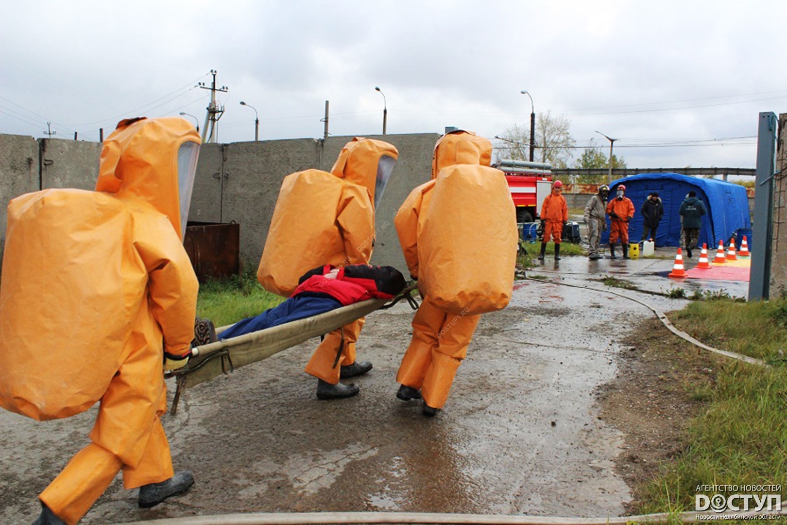 Состав Мобильного спасотряда и специализированной пожарно-спасательной части провели учения по ликвидации последствий утечки хлора.