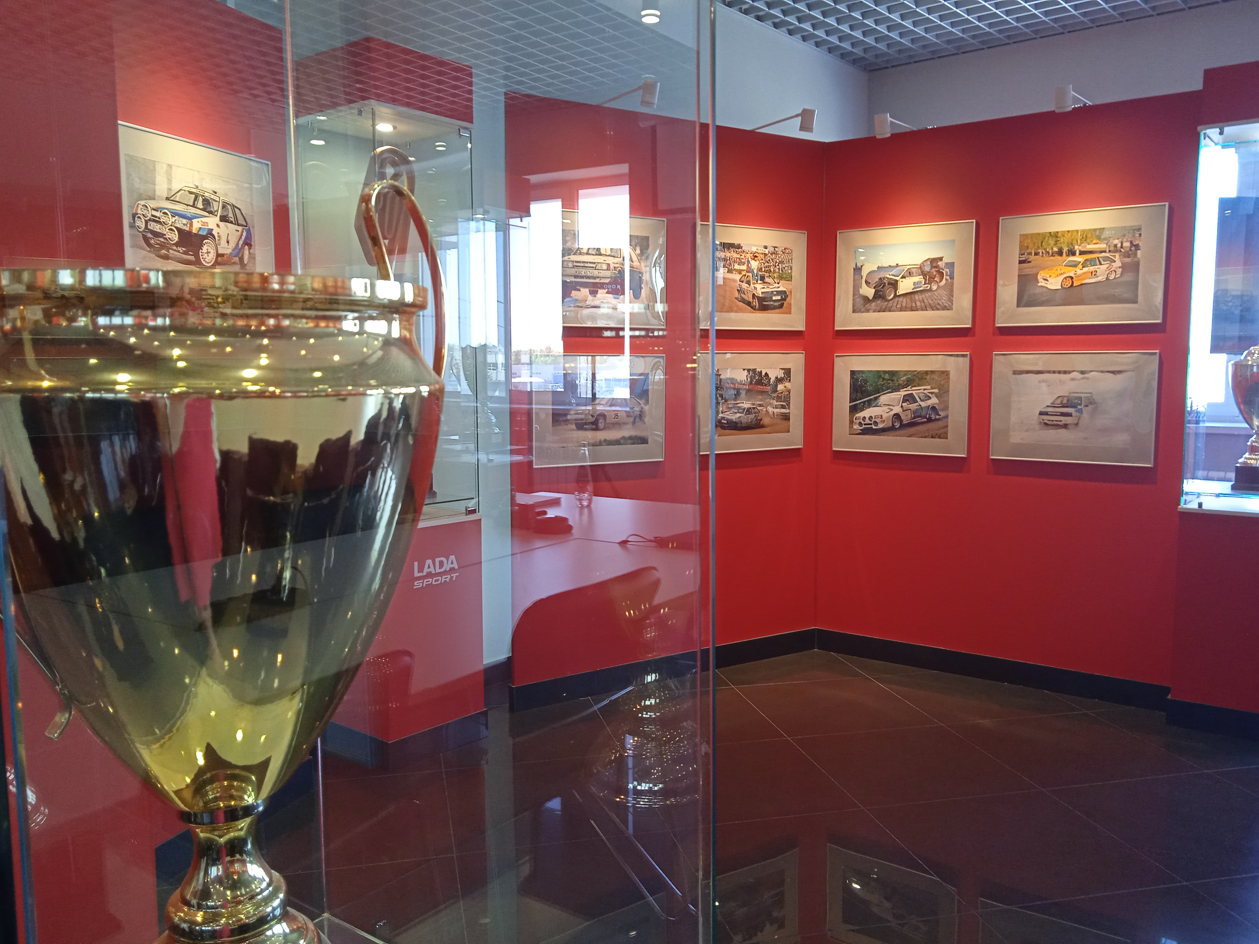 Есть у «ЛАДА спорт» и свой музей спортивной славы и достижений. Здесь собраны трофеи – кубки и награды, фотографии первых автомобилей, участвовавших в гонках и ралли, портреты пилотов- чемпионов в их звездный час. Эти экспонаты фотографировать можно.