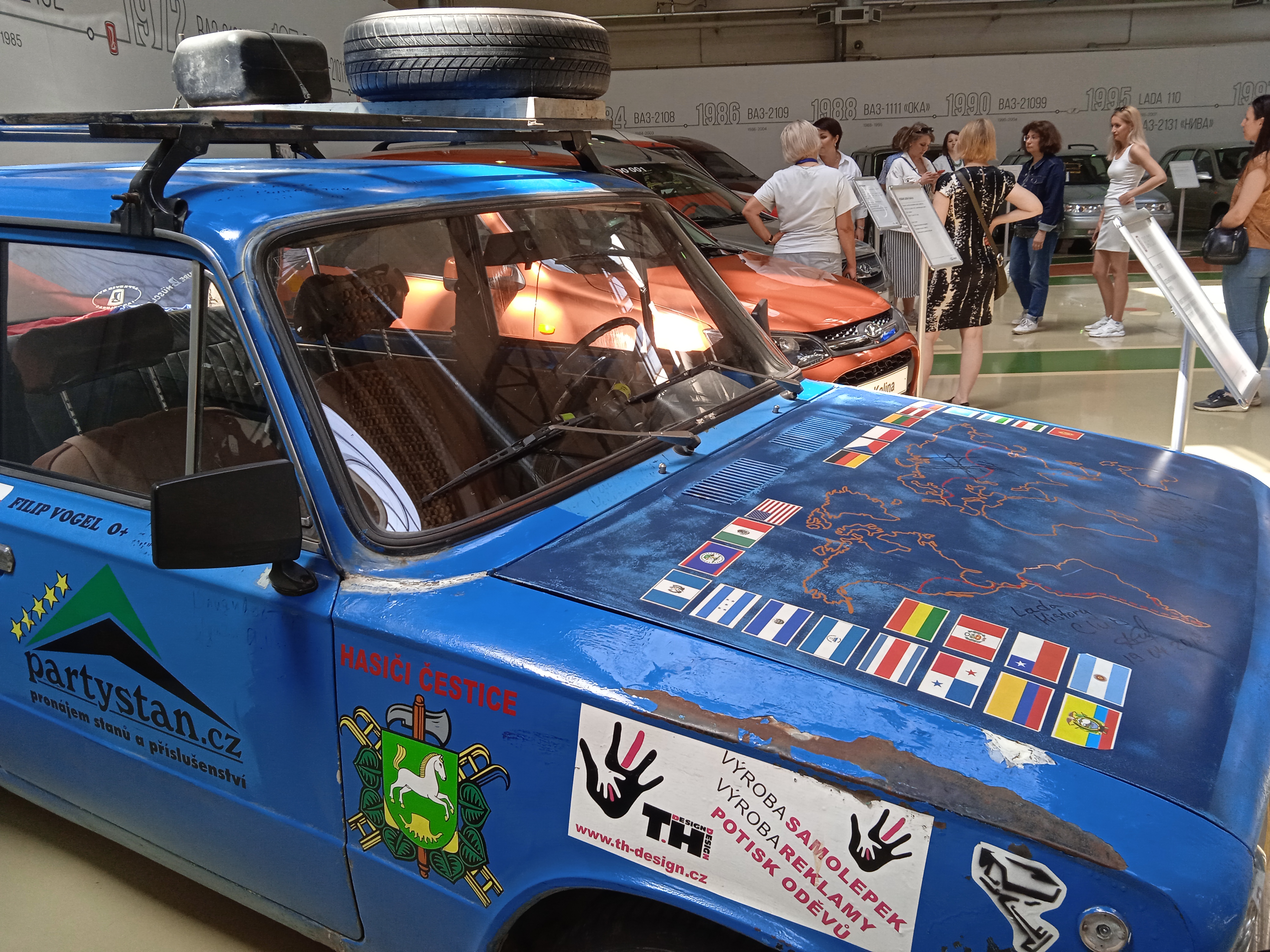 Еще одна «копейка» из музейной коллекции принадлежала гражданину Чехии, который купил ее в 1975 году. И уж эту-то машину не сказать, что берегли. В 2017-2018 годах хозяин совершил на ней кругосветное путешествие, преодолев почти 50 тысяч километров и 26 границ, побывав на четырех материках. Чтобы увековечить подвиг своего стального коня и в благодарность за то, что не подвел на дорогах, хозяин подарил его музею АвтоВАЗа.