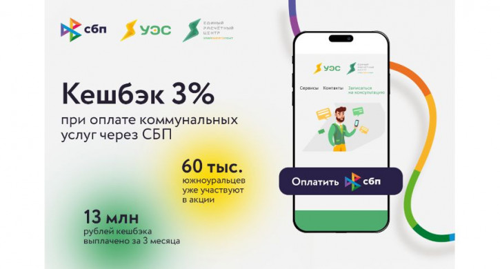 До 30 апреля 2025 года жители Челябинской области могут получить кешбэк* в размере 3% при оплате коммунальных услуг через Систему быстрых платежей (СБП). Более 60 тысяч южноуральцев воспользовались предложением и вернули за 3 месяца 13 млн рублей.