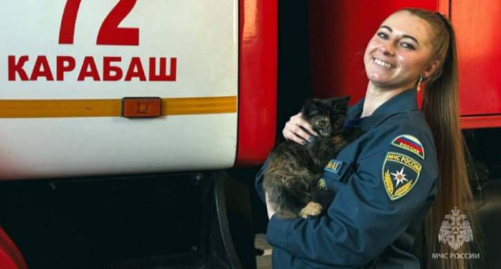 Благодаря челябинским пожарным котенок обрел дом, передает корреспондент Агентства новостей «Доступ».