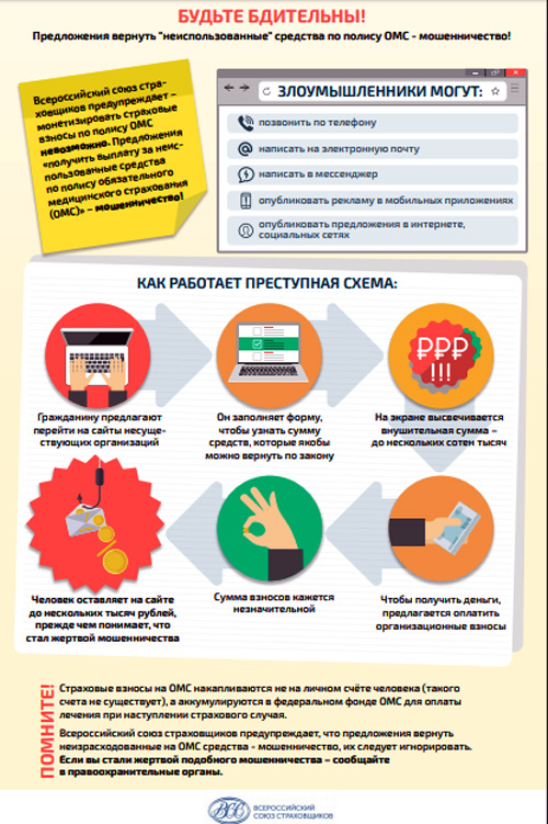 Предложения вернуть неизрасходованные на ОМС средства – мошенничество, их следует игнорировать, а если попались на уловки аферистов – сообщать в правоохранительные органы.