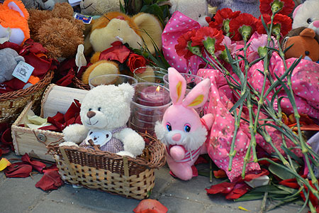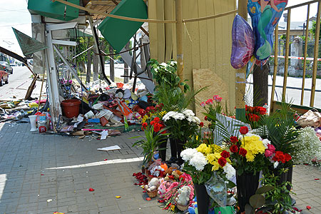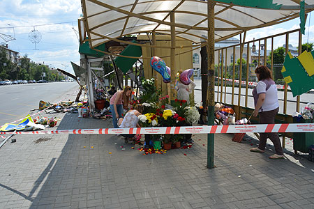 К остановке «ДК Колющенко», где в четверг, 4 июля, под колесами Lexus погибли женщина с ребенком, горожане сегодня, 5 июля, с утра приносят цветы и мягкие игрушки – своеобразную акцию памяти организовала местная жительница, потрясенная случившейся аварией, передает корреспондент Агентства новостей «Доступ».