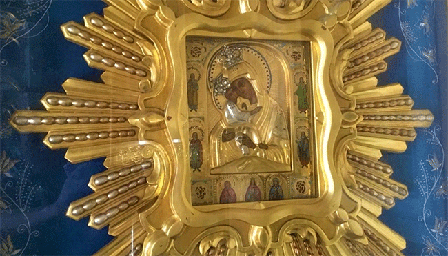 Список Почаевской иконы Божией Матери хранится и в челябинском Свято-Симеоновском кафедральном соборе.