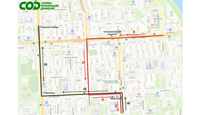 Автобус № 8 будет объезжать этот участок по улицам Каслинская, Калинина и Кирова (в направлении улицы Академика Королева). В остальном – без изменений.