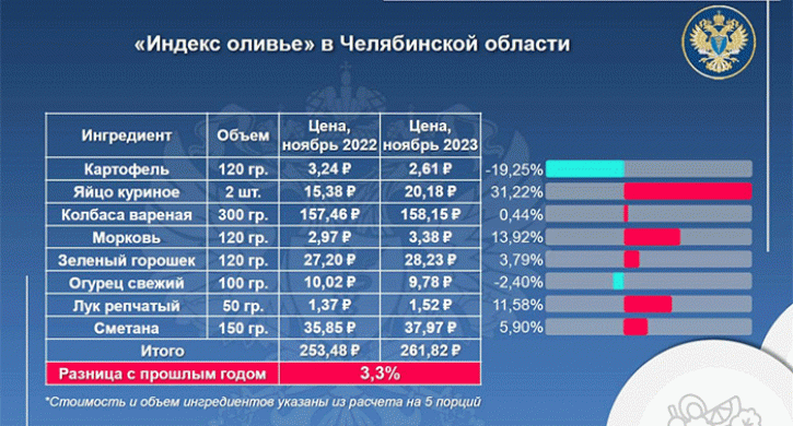«Индекс оливье» в Челябинске в этом году вырос на 3,3%, передает корреспондент Агентства новостей «Доступ».