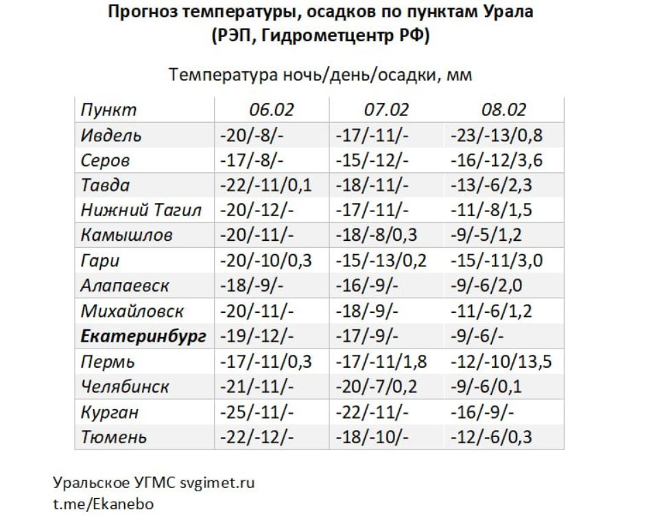 Осадков 6-7 февраля немного, снег вероятен 8 февраля при выносе с южных районов европейской территории России более теплого влажного воздуха, говорят в Уральском УГМС.