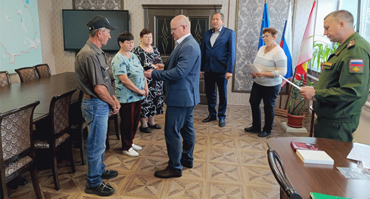 Госнаграду получили родители погибшего бойца Дениса Янсарина из поселка Новочерниговский – Гаяз Ражанович и и Айгуль Рашитовна.