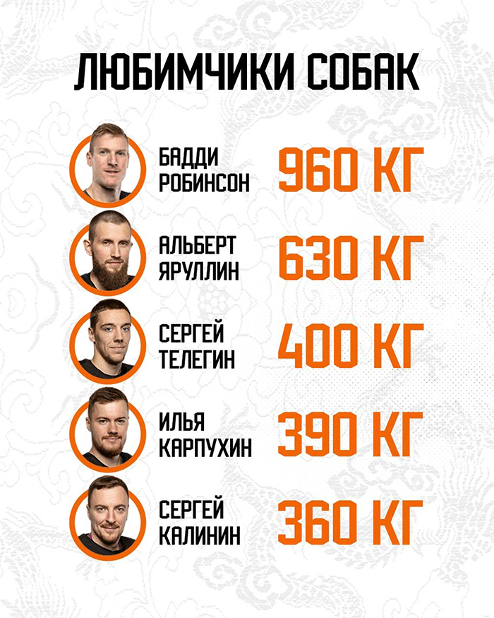 Меньше всех кормили собак нападающий Максим Шабанов (60 кг), защитник Артем Щучинов и вратарь Зак Фукале (по 80 кг).