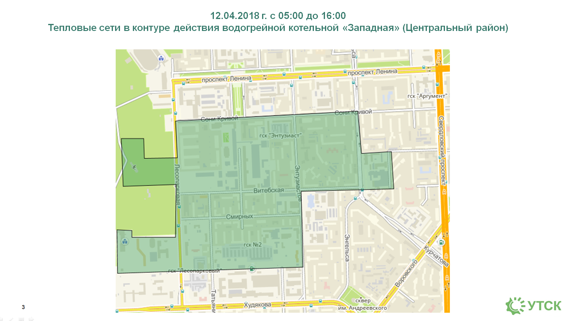 - в контуре действия котельной «Западная» (Центральный район) – 12 апреля;