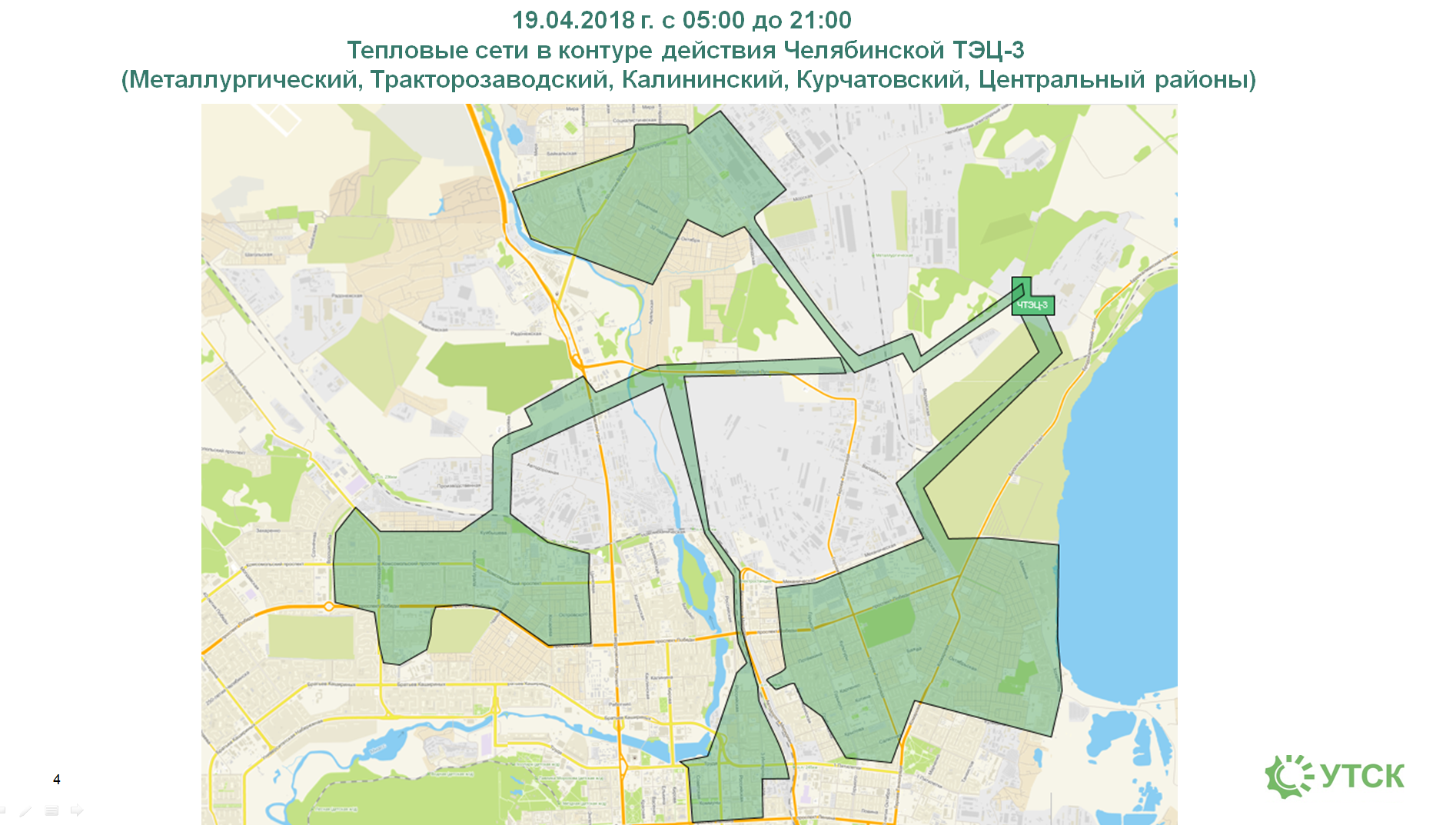 - в контуре действия ТЭЦ-3 (Металлургический, Тракторозаводский, Калининский, Курчатовский и Центральный районы) – 19 апреля;