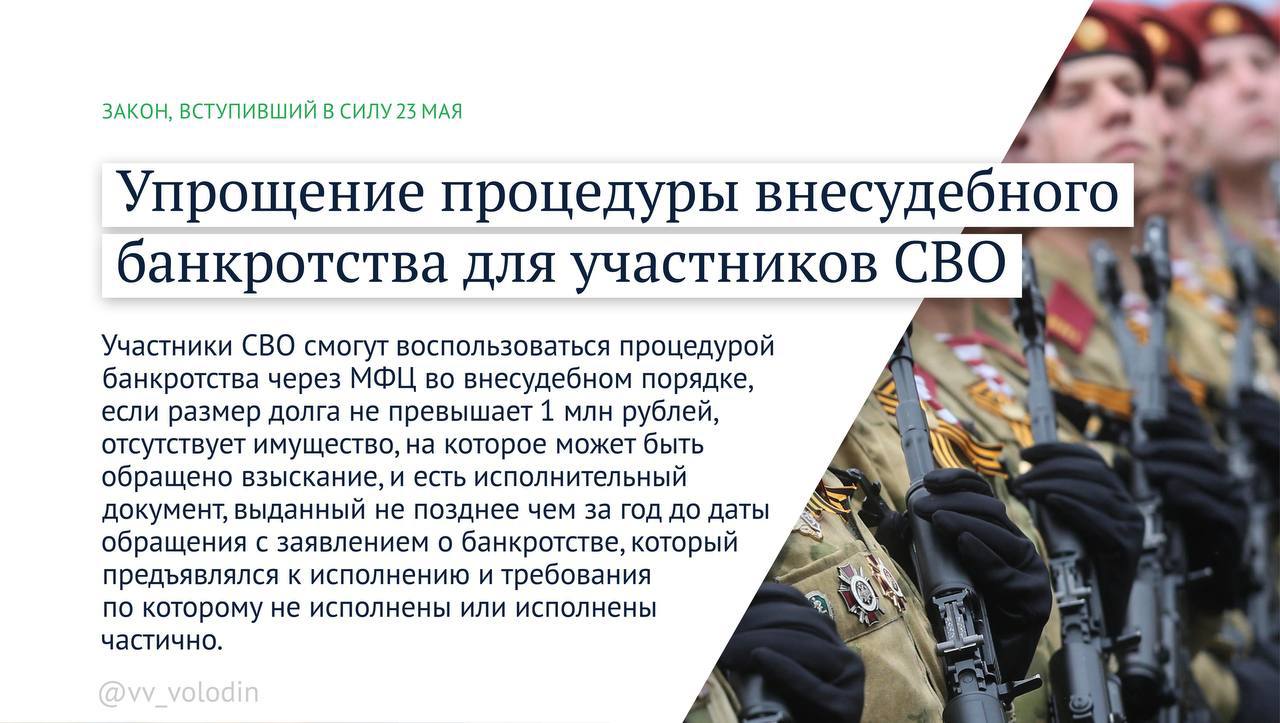 Упрощение процедуры внесудебного банкротства для участников СВО