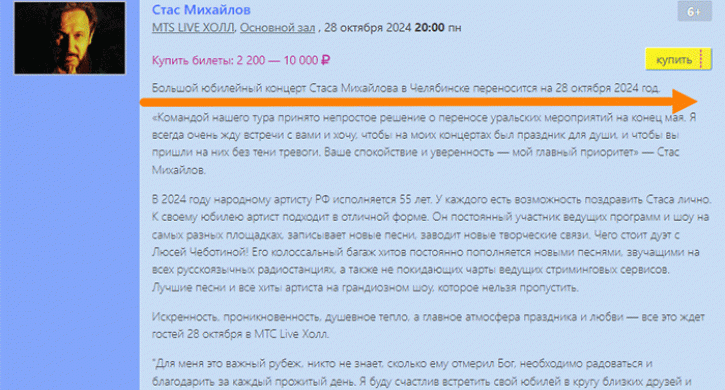Ранее выступление Михайлова в Челябинске уже было перенесено с 4 апреля на 22 мая по техническим причинам.