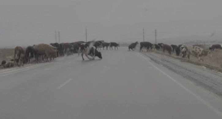 На записи коровы неловко переходят покрывшуюся льдом дорогу. И, судя по кадрам, крылатое выражение «как корова на льду» появилось неспроста.