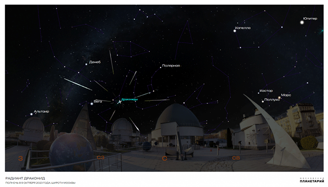 «В ночь с 8 на 9 октября максимума своей активности достиг метеорный поток Дракониды. Пик активности ожидается примерно в 10.00 по московскому времени 9 октября 2023 года», – сообщает пресс-служба Московского планетария.