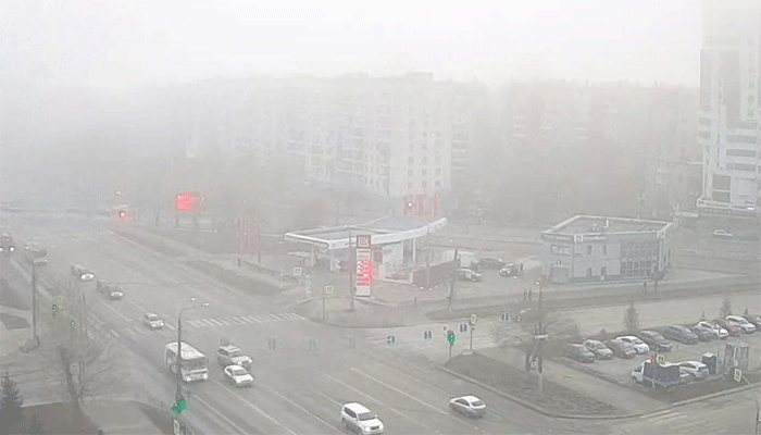 На Челябинск утром 5 апреля опустился густой туман, передает корреспондент Агентства новостей «Доступ».