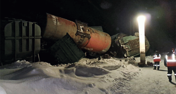 В результате произошло столкновение тепловоза с двигавшимся подвижным составом, 14 вагонов сошло с рельсов.