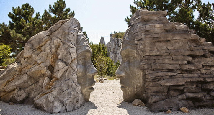«Оригинальная композиция в виде двух лиц, смотрящих друг на друга, станет новой достопримечательностью полуострова. Арт-объект на Ай-Петри символизирует единство Крымских и Уральских гор: два хребта словно беседуют друг с другом. Центральное место в монументе занимает человек как продолжение природы, ен созерцатель и хранитель, ее олицетворение», – говорится в комментарии.