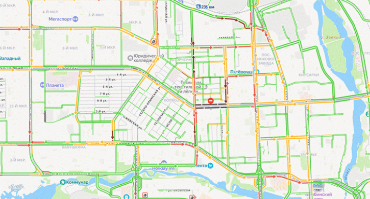 Там, по данным сервиса Яндекс Карты, на прилегающих улицах образовались временные заторы.