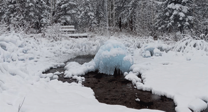 Ледяной фонтан каждый раз несколько отличается от предыдущих форм, она зависит от температуры, силы и направления ветра.