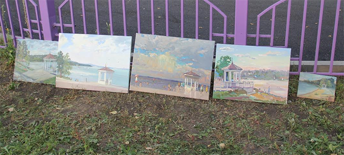 «Меня поразила работа Дмитрия Петрова. Его картины получились такие солнечные, светлые. А начал писать небо зеленым и плотным синим цветами. Потом у него постепенно все “засветилось”, “зажглось”. У Алексея Буртасенкова интересно было то, что он работает на нескольких палитрах. Я знаю, что кистями разными пишут, чтобы краска не перемешивалась, но чтобы палитры разные – для меня было удивительно. Детей удивляло, что художники, придя с белым чистым холстом, почти сразу изобразили произведение такого уровня, что можно вставлять в раму и вешать на стену», – поделилась впечатлениями педагог.
