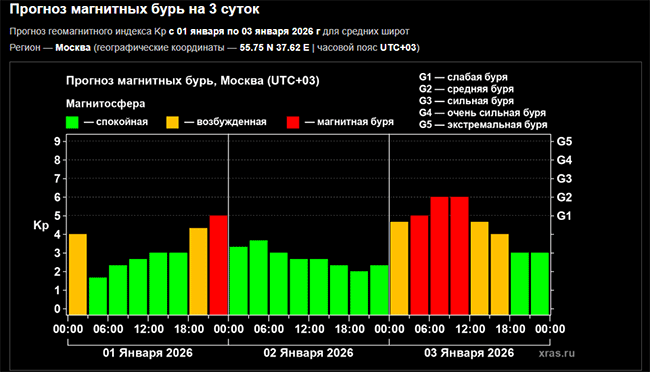 Первая заметная магнитная буря 2026 года прогнозируется в ночь на 3 января, передает корреспондент Агентства новостей «Доступ».