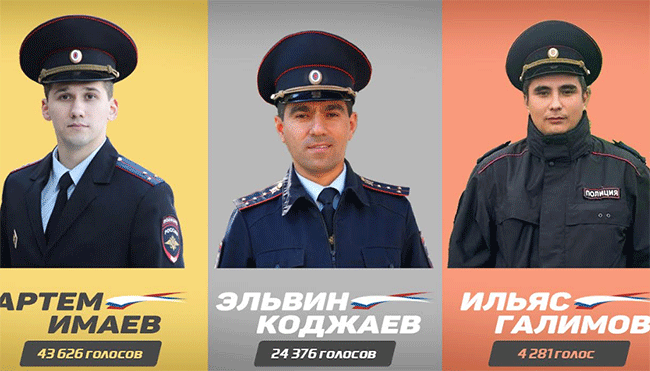 Тройку «народных» участковых замкнули участковые из Еткуля и Кунашака – капитан полиции Эльвин Коджаев и старший лейтенант полиции Ильяс Галимов. Они набрали по 24 тыс. и 4 тыс. голосов соответственно.