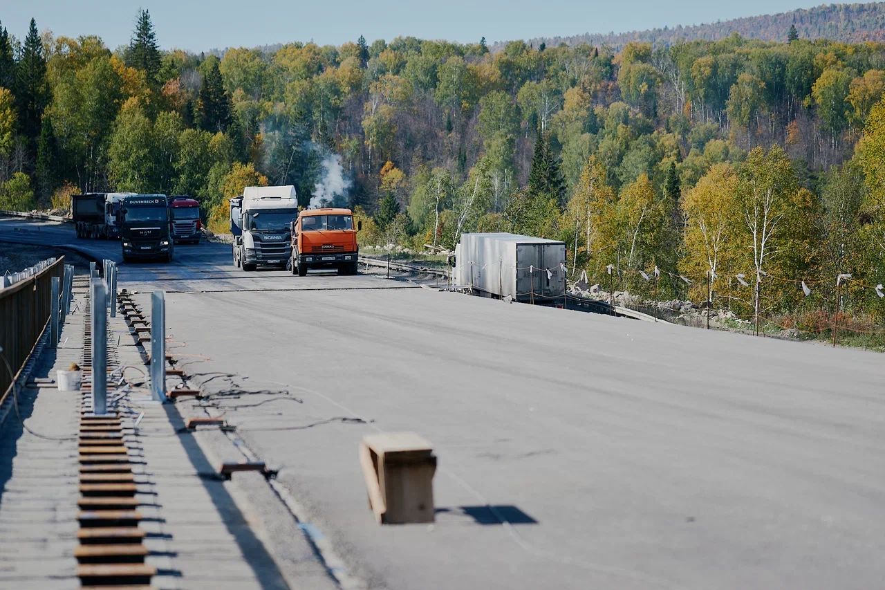 Напомним, с начала реконструкции трассы движение транзитного транспорта осуществлялось по уже существующей дороге. Досрочно завершенный первый этап буровзрывных работ позволил переключить транспортный поток на вновь построенную часть моста на 1 575 – 1 576 км; одновременно начато строительство левой его части с подходами на месте существующей трассы.