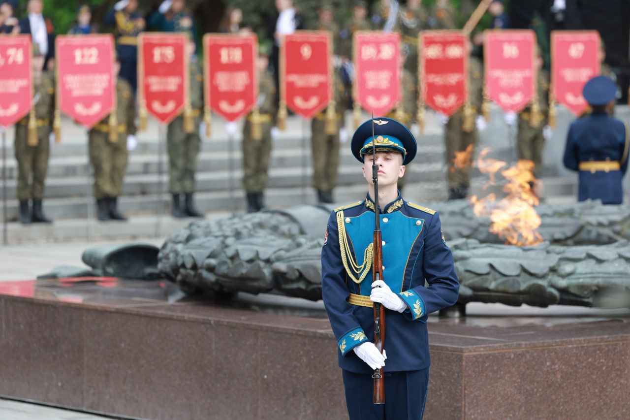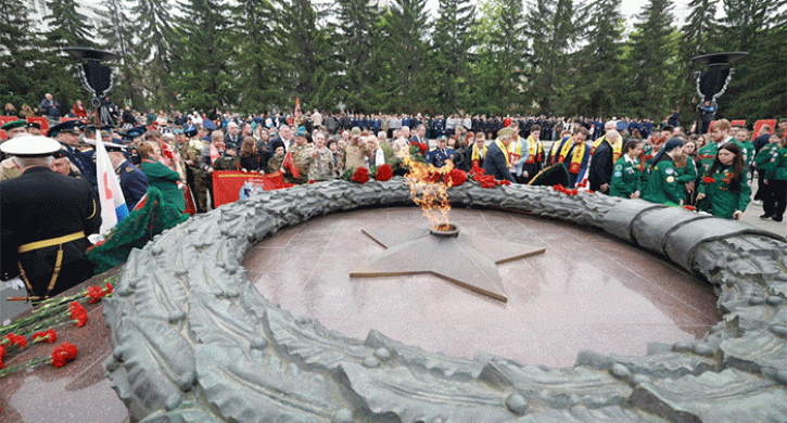 Церемония возложения цветов и венков к Вечному огню на Аллее Славы.