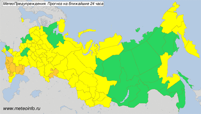 Этот уровень означает «погода опасна, имеется вероятность стихийных бедствий, нанесения ущерба», следует из комментария Гидрометцентра России.