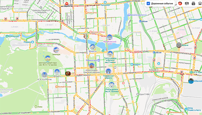 В настоящее время очень плотное движение фиксируется на отдельных участках улиц Воровского, Труда, Дзержинского, Блюхера, Братьев Кашириных, проспекта Ленина, Свердловского проспекта.
