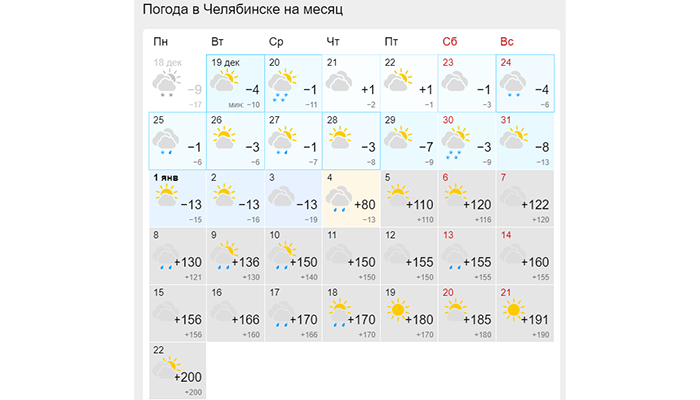 С 4 января синоптики обещают в областном центре от плюс 80 до 200 градусов. Искажение информации связано, скорее всего, с техническим сбоем.