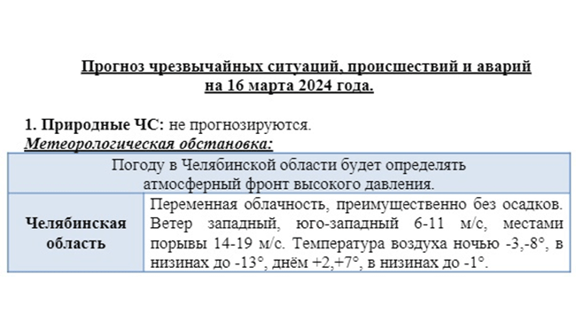 «Основание: в отдельных районах порывы 15-19 м/с. Период предупреждения: до 20 часов 16 марта», – говорится в Прогностической карте предупреждений по УрФО, подготовленной Гидрометцентром России.