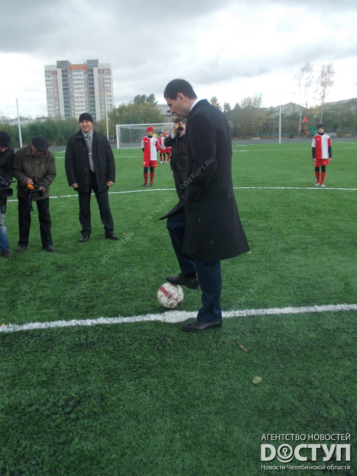 В ходе открытия Юревич попинал мяч и оставил на нем свой автограф. После чего на новом поле состоялся футбольный матч, организованный спортклубом «Локомотив» в рамках Кубка Челябинска.