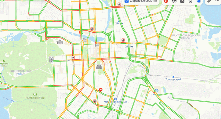 Напряженное движение фиксируется на улицах Доватора, Худякова в направлении северо-запада, улице Энгельса, где произошло ДТП, на отдельных участках проспекта Ленина и улицы Воровского.