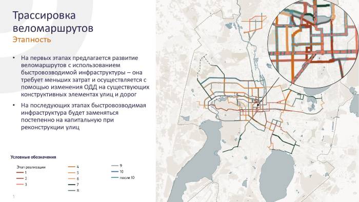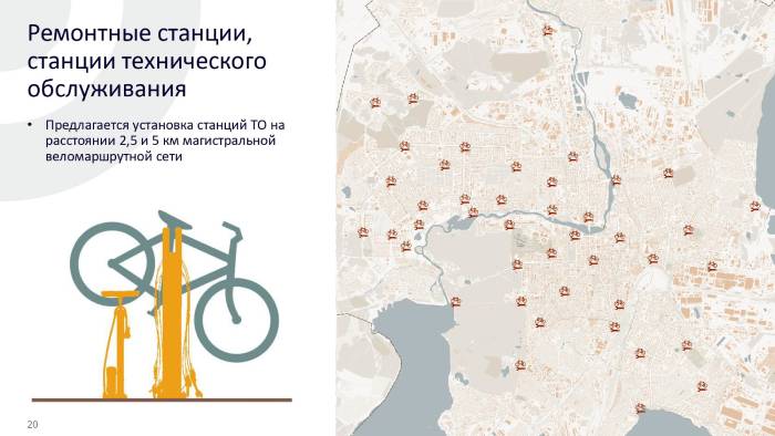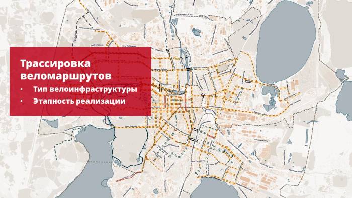 Презентация прошла в Доме архитектора. Команда разработчиков Стратегии – компания OTSLab представила сеть велодорожек, которые планируется проложить в городе поэтапно в течение 10 лет, а также места планируемого размещения велопарковок, станций техобслуживания и других элементов инфраструктуры.