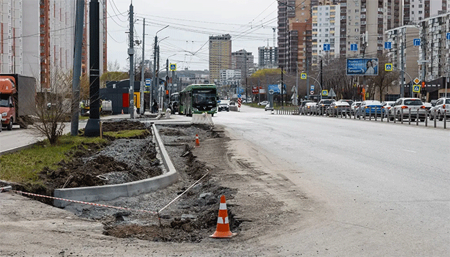 Так, на участке от улицы Чичерина до улицы Молодогвардейцев в обоих направлениях ведется замена бордюров, формируются технические тротуары, начался капремонт и модернизация сетей ливневой канализации, подъем колодцев.